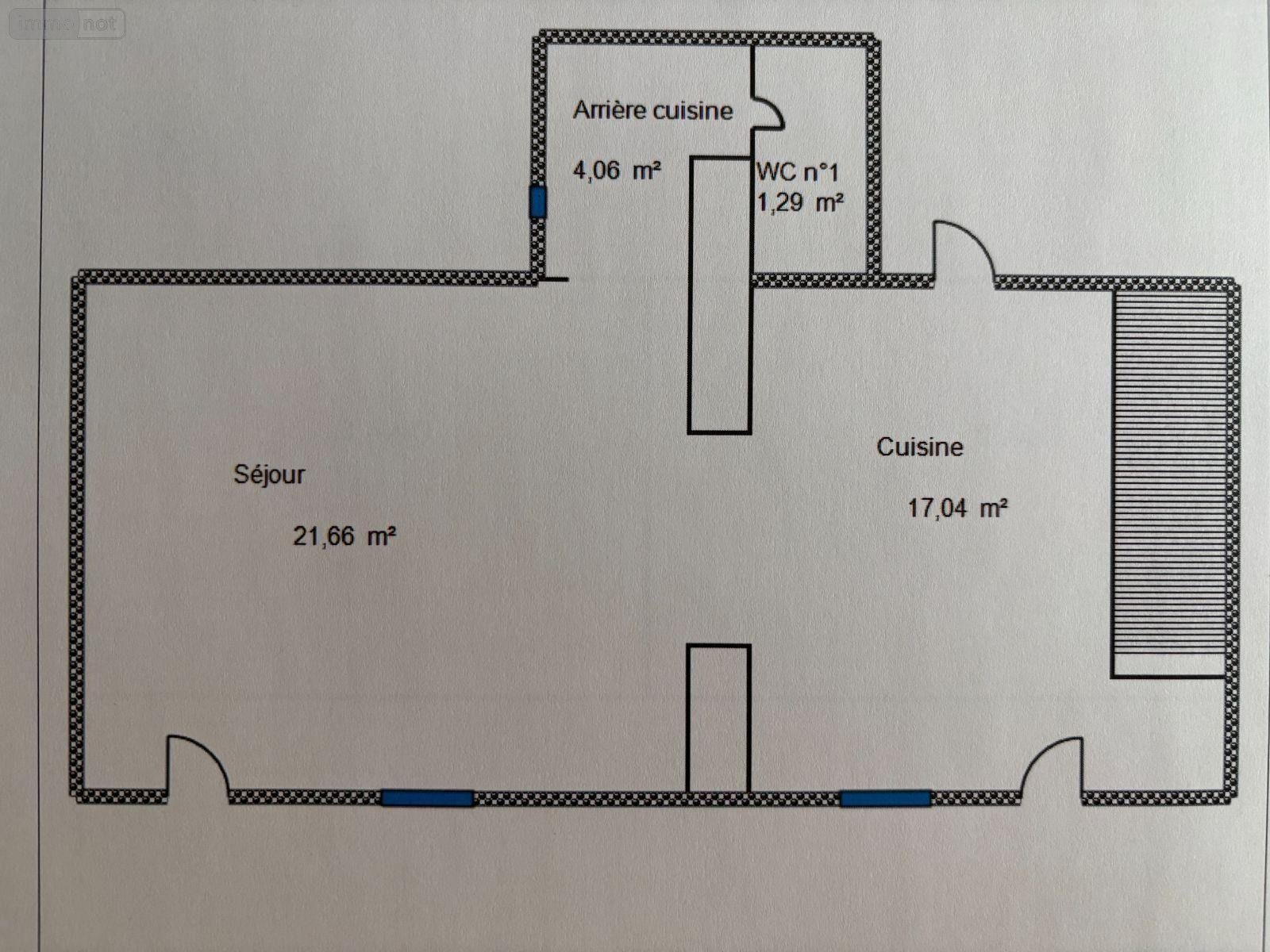 RDC : cuisine, séjour, arrière cuisine et wc.
