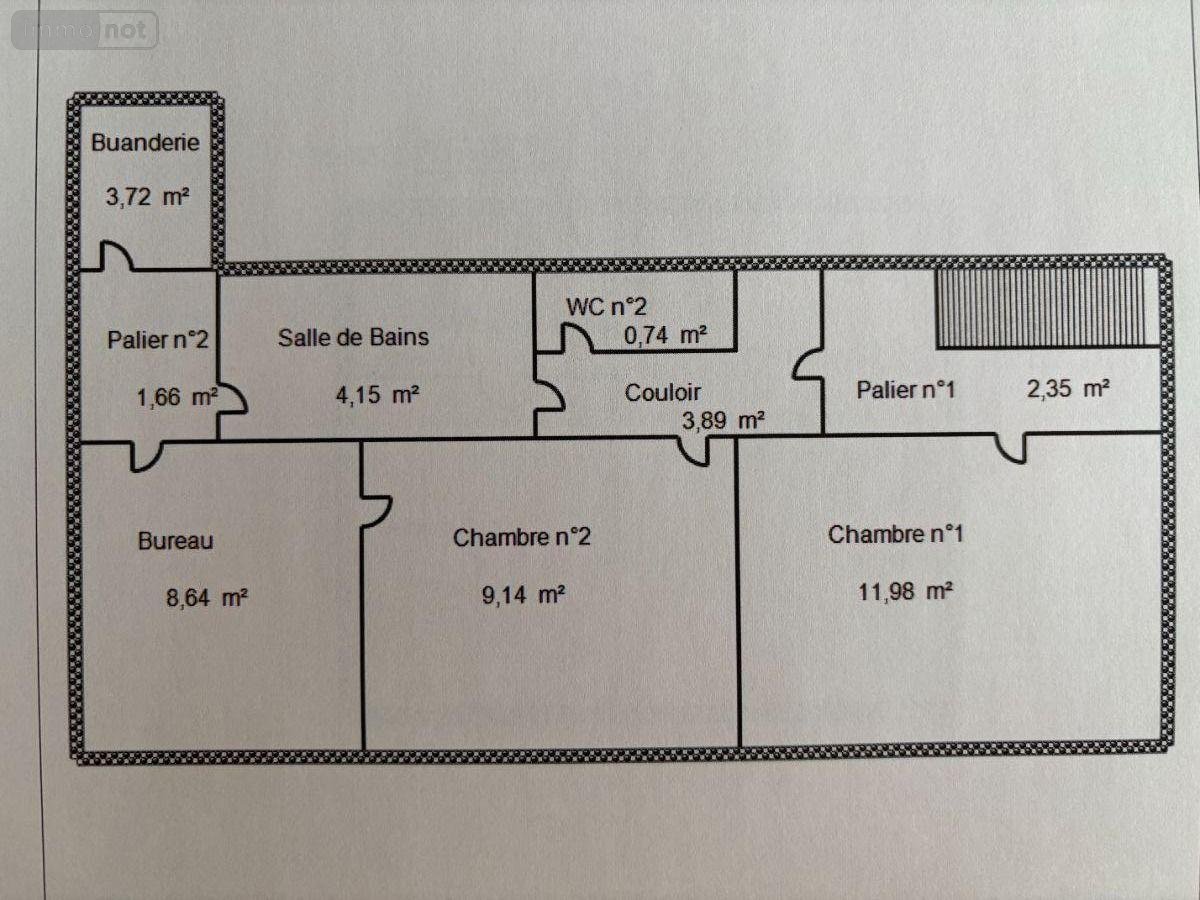 ETAGE 1 : 2 chambres, bureau (ou chambre d'appoint), buanderie, salle de bains et wc.