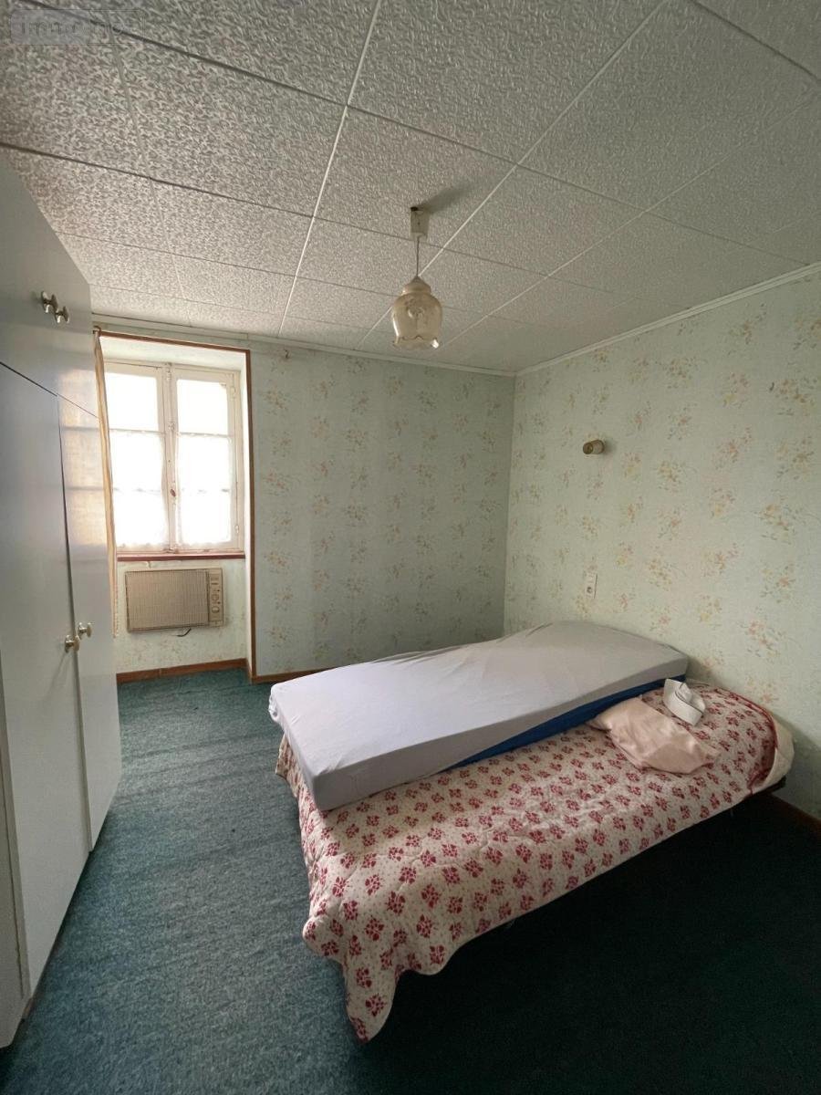 Au coeur du bourg, une maison de ville en pierres sous ardoise d'environ 100m² comprenant au rez-de-chaussée : un séjour- salon avec une cuisine couverte, une salle d'eau, une réserve. Au premier étage : 3 chambres, une salle de bains avec WC. Au dessus un grenier. Logement à consommation énergétique excessive Les informations sur les risques auxquels ce bien est exposé sont disponibles sur le site Géorisques : www. georisques. gouv. fr