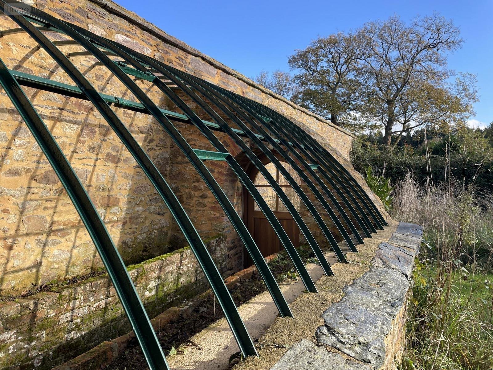À l'arrière, le terrain dispose d'une magnifique serre en pierre datant de 1885, d'anciens cabinets d'aisance de 1801, un puits et un garage en bois, complétant cet univers authentique.