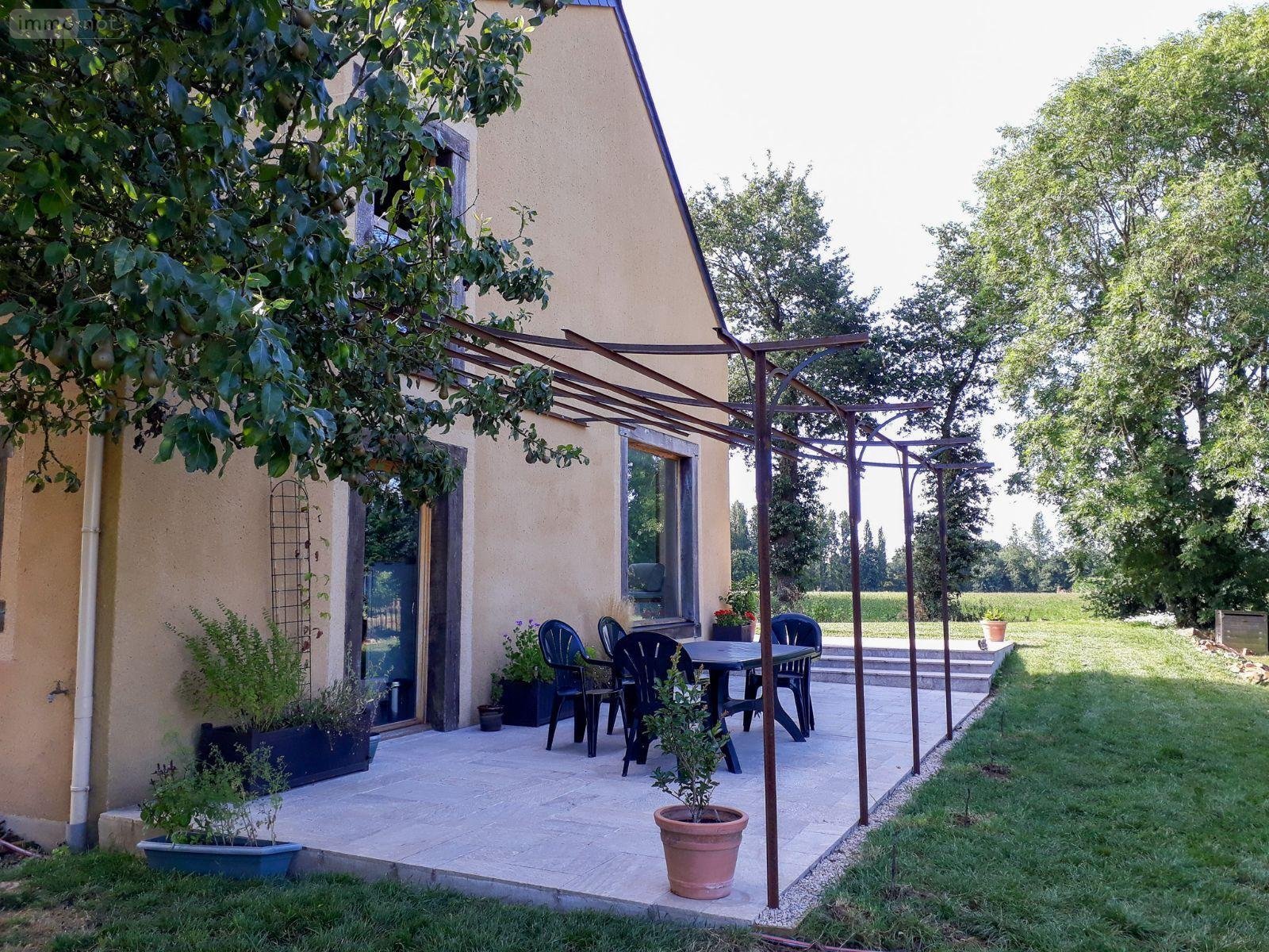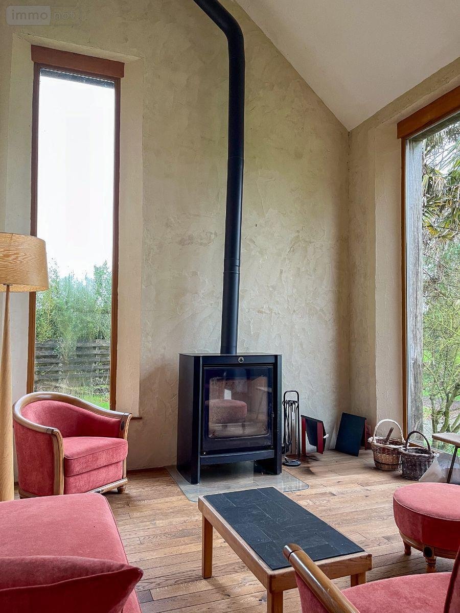 La maison offre de beaux volumes, un espace de vie lumineux et une vue dégagée sur le jardin et la nature environnante.
