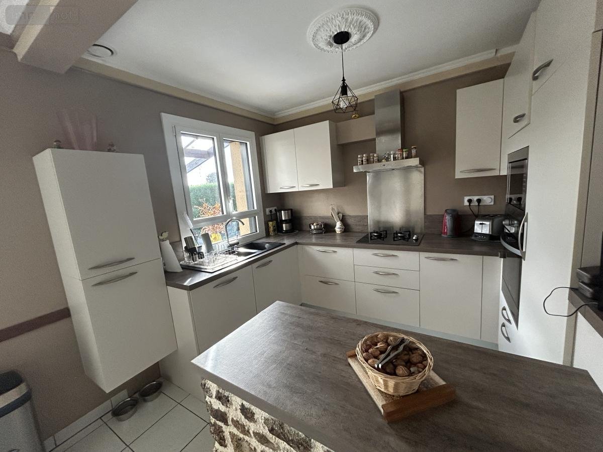Dans un environnement agréable, maison de type 6 de 132 m² comprenant une entrée, un séjour-salon avec poêle à bois, une cuisine aménagée avec coin repas, 3 chambres + bureau à l'étage, mezzanine ( possibilité 4ème chambre), salle de bains, garage double et coin cave, le tout sur un terrain de 1396 m²