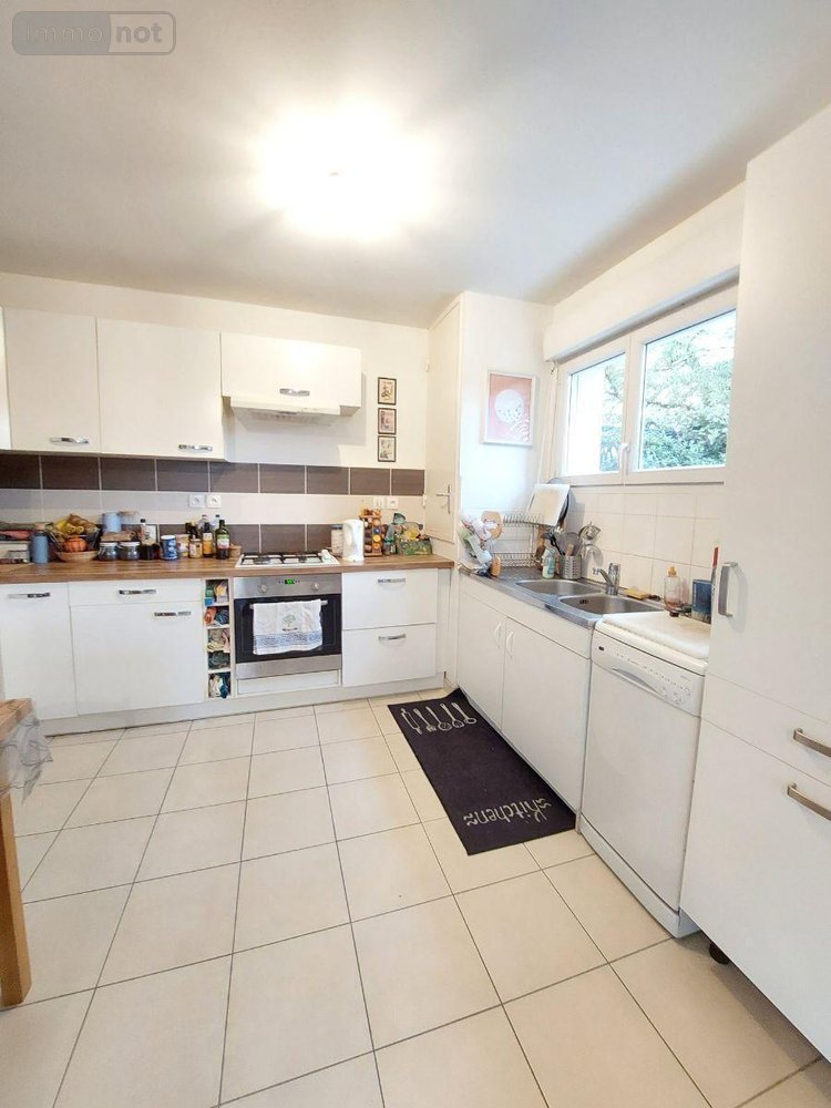 A VENDRE - SAINT-GREGOIRE (35) Quartier Champ Daguet. Une maison mitoyenne de 94 m² dans un lotissement se composant : au rez-de-chaussée : entrée, salon séjour, cuisine ouverte, dégagement avec placard, WC. À l'étage : dégagement, une chambre, deux chambres avec placards, WC, salle de bains, suite parentale avec placard et salle d'eau. Jardin, garage avec porte manuelle, deux places de parking devant.