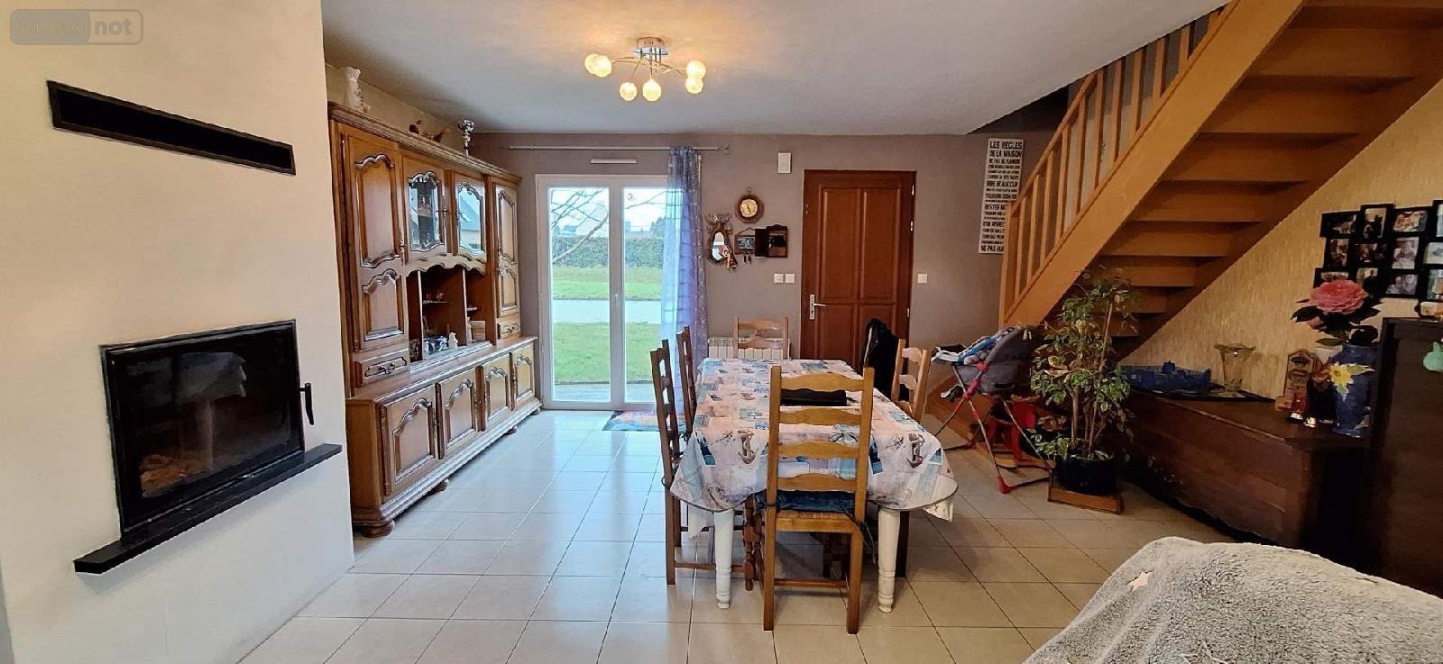 - Rez-de-chaussée: pièce de vie avec cheminée insert, cuisine ouverte aménagée et équipée, une chambre, salle d'eau-wc,