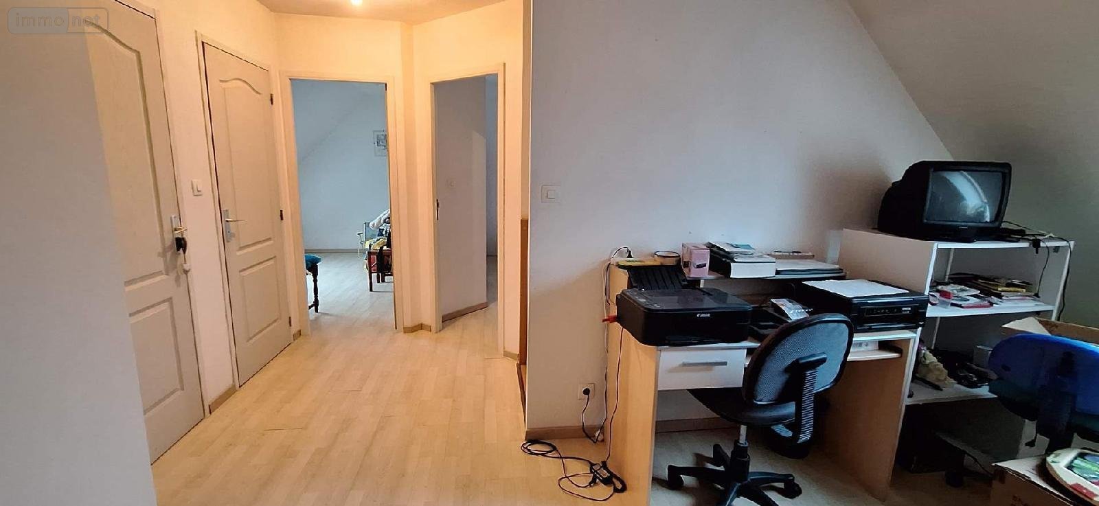 - Etage: mezzanine, trois chambres, salle de bains, wc,