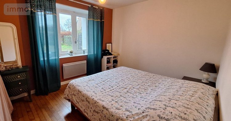 Pièce de vie avec poêle à bois et cuisine ouverte, deux chambres, salle de bains, wc, arrière cuisine, garage.