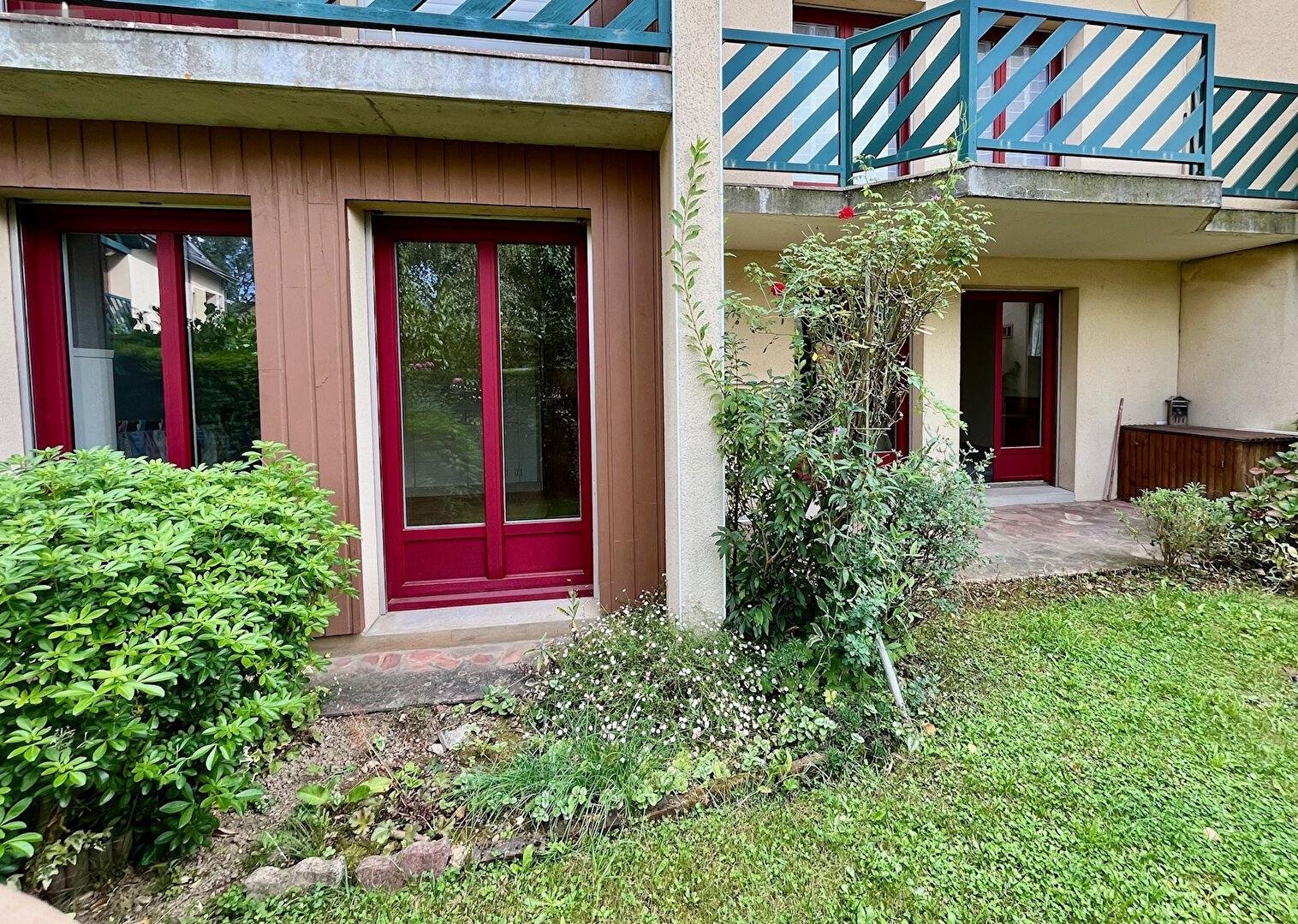 MONTFORT S/ MEU - EXCLUSIF - Bel appartement de trois pièces. Séjour salon avec cuisine US aménagée et équipée, accès direct sur terrasse et jardin. Deux chambres. Salle d'eau. Parking et cave