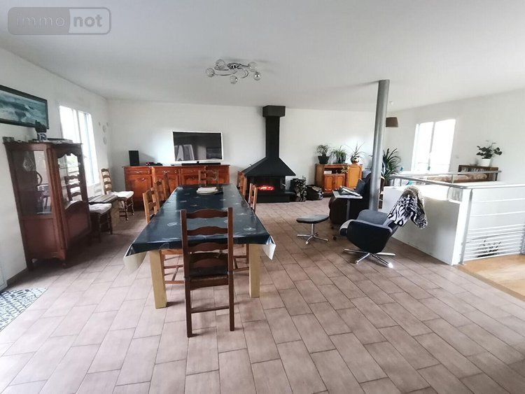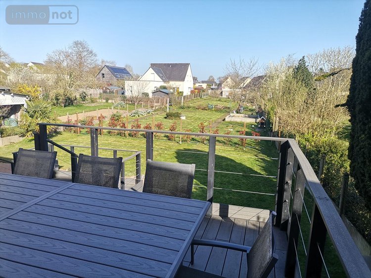 MONTFORT SUR MEU - Centre-ville, maison de 214 m² hab., composée d'une entrée, un salon/séjour avec poêle à bois, une cuisine aménagée/équipée, 6 chambres, dressing, bureau, mezzanine, 2 salles de bains, 2 wc, grande terrasse donnant sur un terrain de 680 m² env. Garages, buanderie et cave.