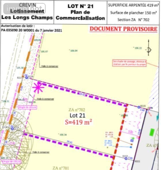 Etude de Guichen - CREVIN - Lotissement les Longs Champs - A proximité des écoles et du centre - Lot 21 - Terrain de 419 m² - Libre de constructeur