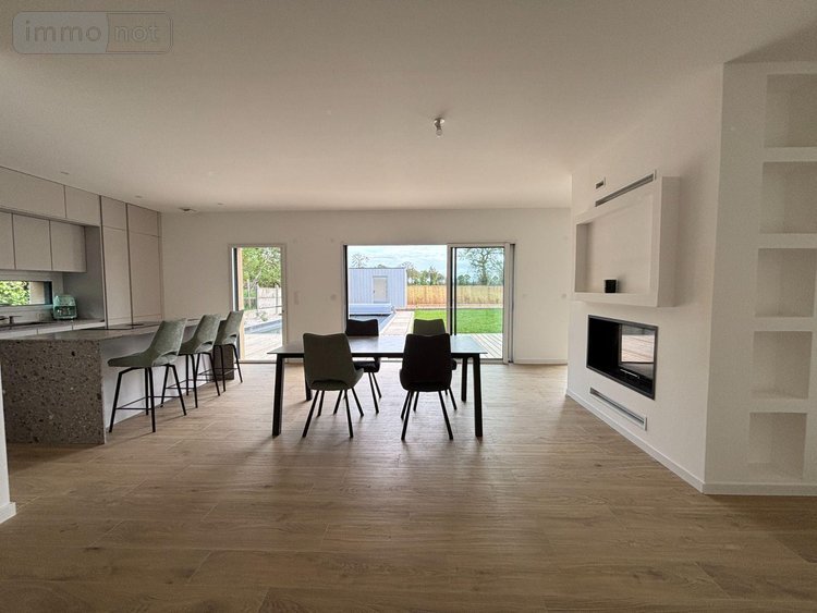 L'entrée avec rangement ouvre sur une vaste pièce de vie de près de 70m², avec cheminée centrale et cuisine aménagée et équipée. L'ensemble baigné de lumière grâce à ses larges ouverture et sa triple exposition.