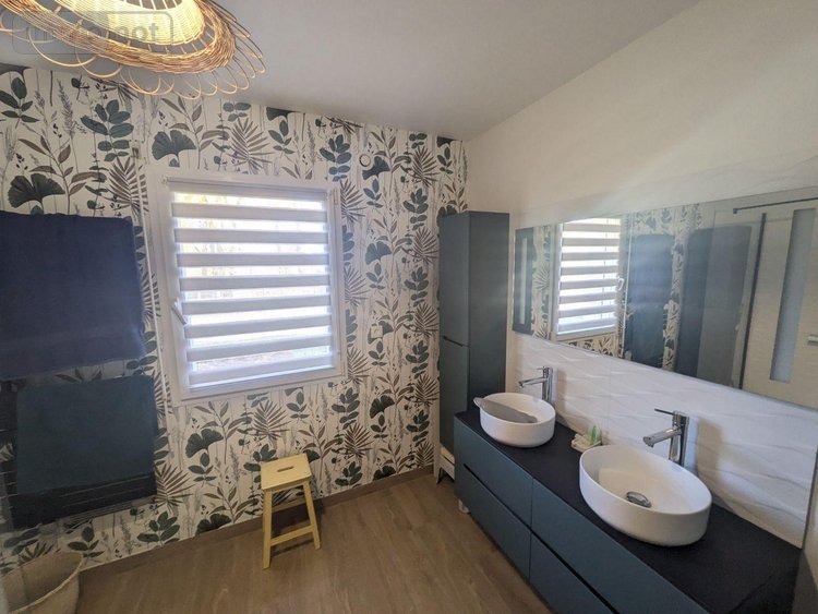 - Au rez de chaussée: Hall d'entrée, séjour-salon avec cheminée de 53 m² ouvrant sur terrasse sud, cuisine équipée et aménagée, arrière cuisine, bureau, chambre avec dressing salle d'eau et wc.