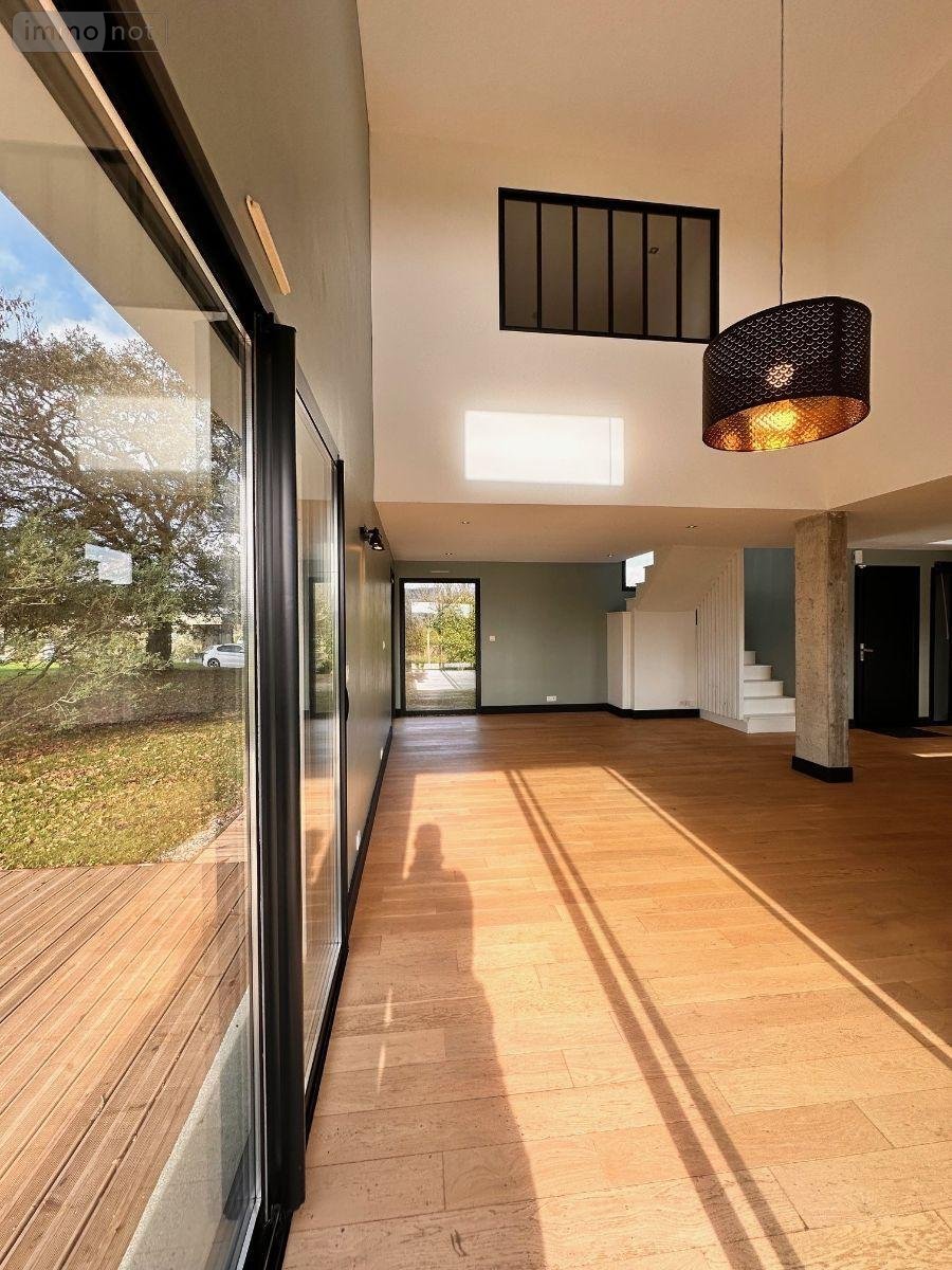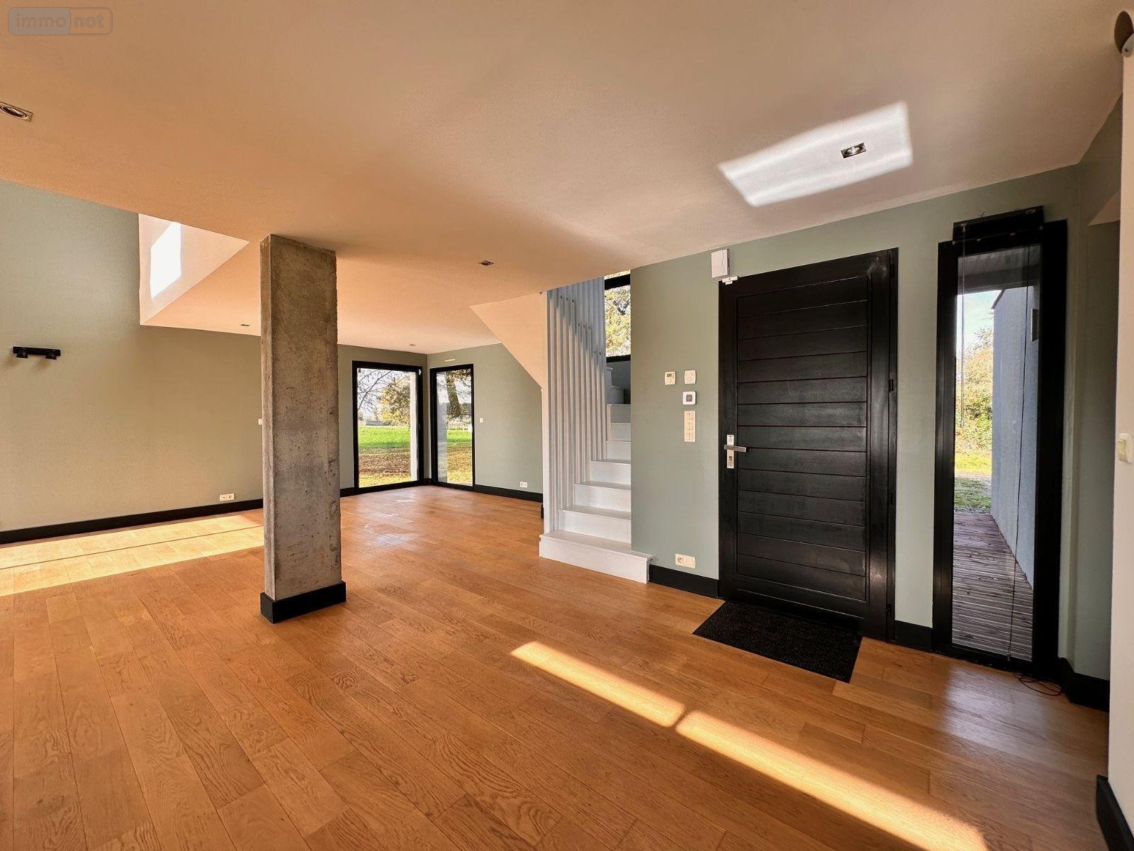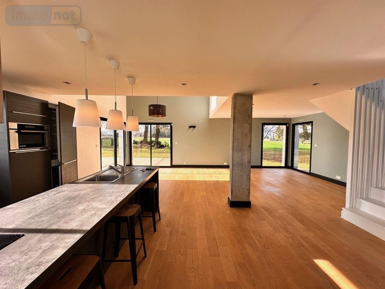 GUIGNEN - A découvrir cette maison de 2009 située dans un hameau au sud de GUIGNEN avec accès rapide pour rejoindre l'axe de Redon - Elle se compose d'une grande pièce de vie sur parquet massif baignée de lumière profitant d'un plafond cathédrale - cuisine équipée - wc. A l'étage : 2 grandes chambres - salle d'eau et wc - Grande terrasse bois exposée plein sud sur un terrain de 1500 m² sans vis à vis