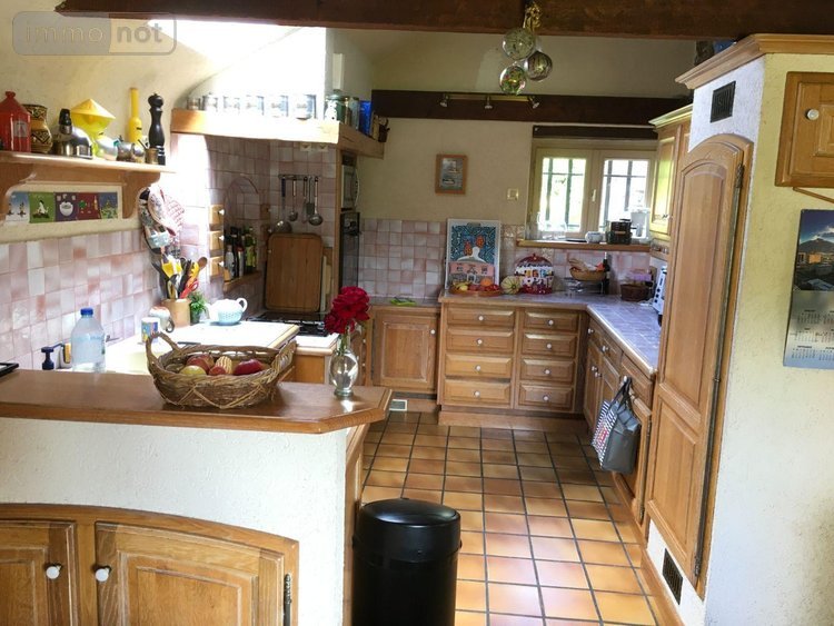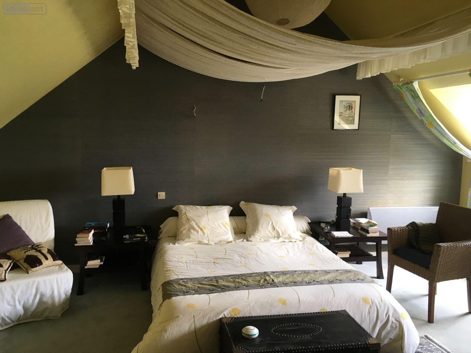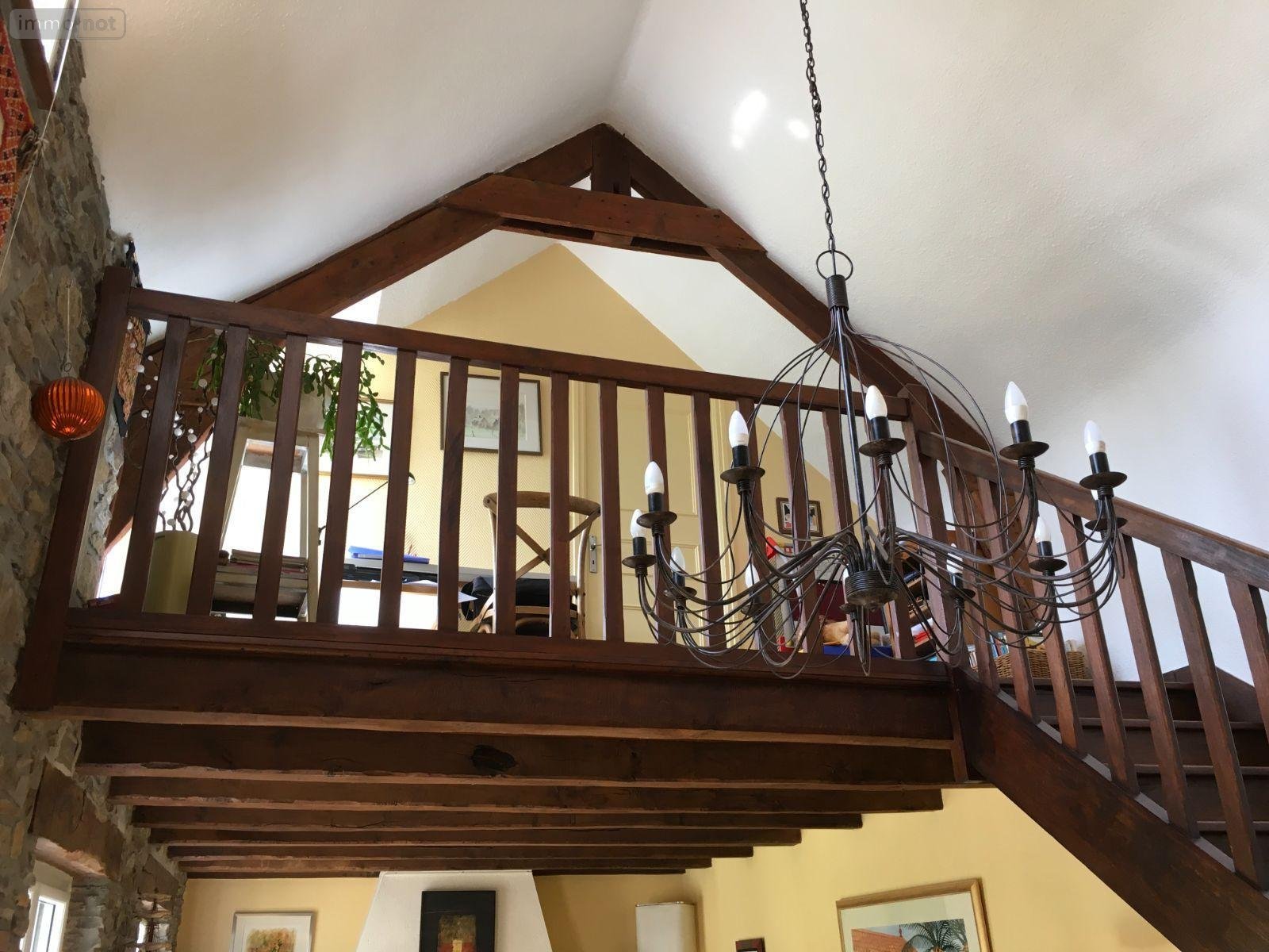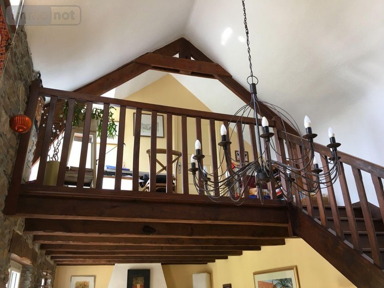 Maison de charme, au calme, exposée sud en façade, comprenant, sur partie gauche : cuisine aménagée donnant sur séjour avec cheminée, mezzanine au-dessus et chambre dans le prolongement avec placard, wc et cabinet de toilette. Sur partie droite : un salon bibliothèque avec cheminée, avec sur arrière une entrée, buanderie wc et salle de bains, à l'étage : deux chambres, une salle de bains avec baignoire et douche, un wc. Accès des pièces de vie donnant directement sur la terrasse. Garage et nombreux stationnements. Beau terrain arboré d'une surface de 1151m2.