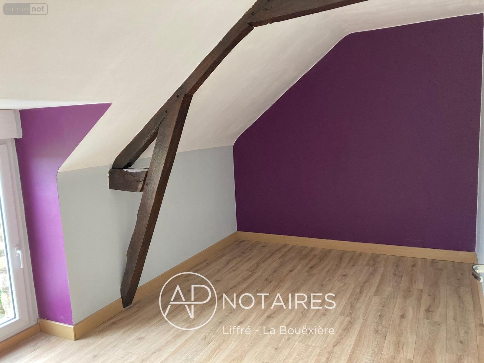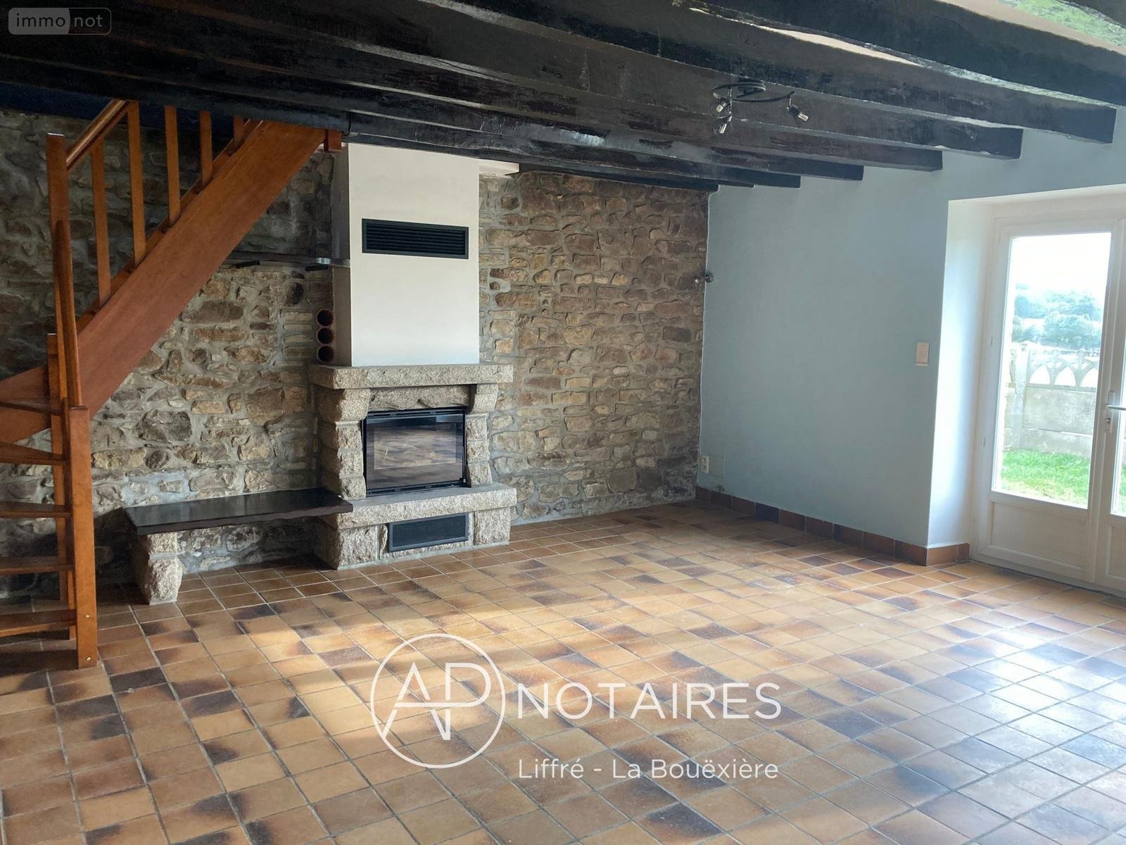 A louer, maison de 80 m² en campagne de Gosné. Elle se compose comme suit : entrée, cuisine, séjour avec cheminée insert, salle d'eau avec WC. A l'étage deux chambres. Garage cour et jardinet. Libre de suite.