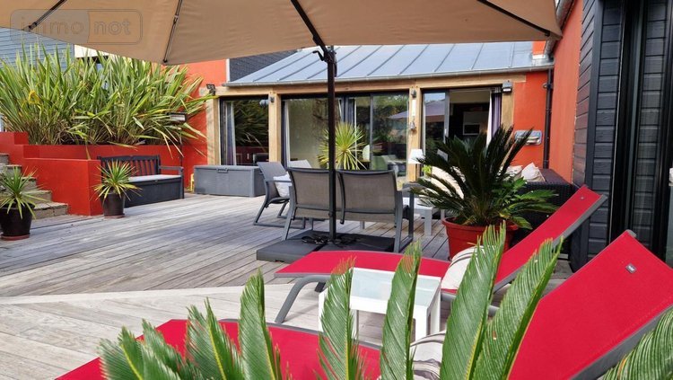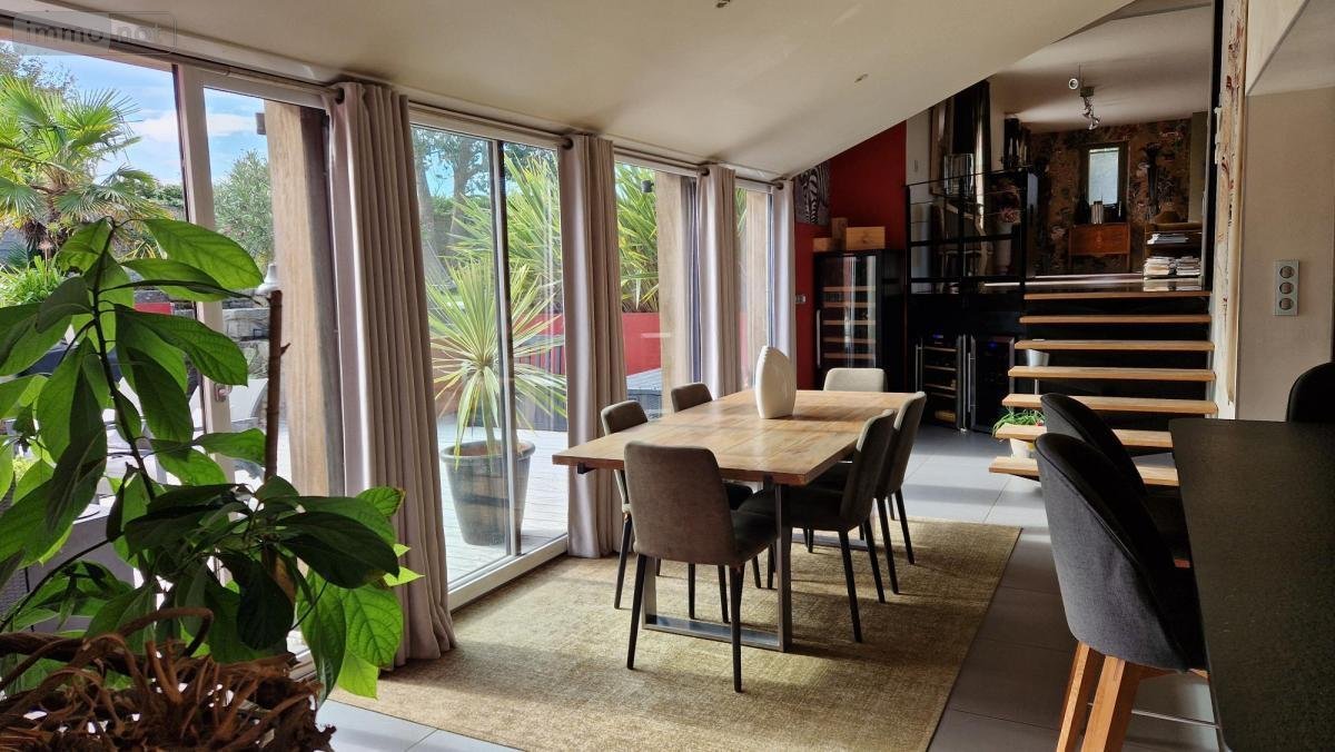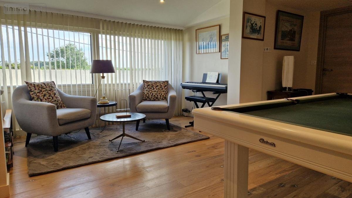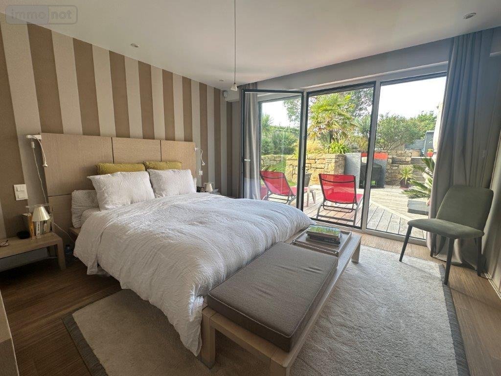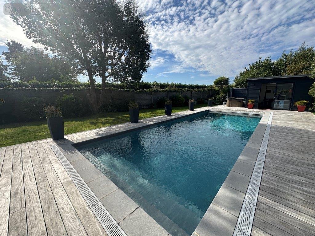 Saint Malo - Saint Coulomb - A proximité du havre de Rotheneuf - Environnement calme - Maison contemporaine (281.10m²) comprenant en rez-de-chaussée un hall d'entrée desservant un salon (55m²), une salle à manger, une cuisine aménagée et équipée, une arrière-cuisine, salle de jeux-bibliothèque et suite parentale (34m²) avec dressing, salle de bains et chambre, toilette. Au 1er étage : les paliers desservent cinq chambres, dressings, une salle de bains-douches et toilette. Grenier perdu au dessus. Dans le jardin : terrasses aspectées au sud avec barbecue, piscine (chauffée), jacuzzi, douche extérieure, salle de sport, terrain de boules et chalet à outils. Garage pour deux véhicules et un carport. Stationnements aériens. Jardin clos et paysager (1488m²).