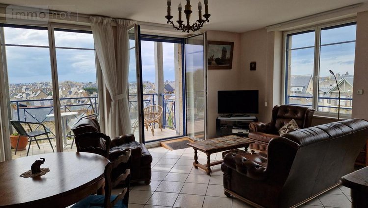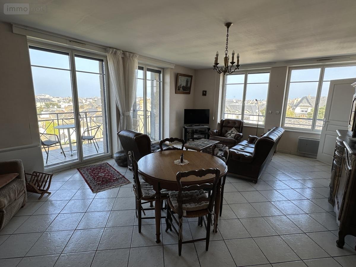 SAINT MALO - Coeur de Paramé - Appartement T3 lumineux d'environ 76m² - Entrée desservant une cuisine équipée ouverte, une pièce de vie avec balcon Ouest, deux chambres (14.55 et 8.76m²), une salle d'eau et un wc. Deux caves et un garage.