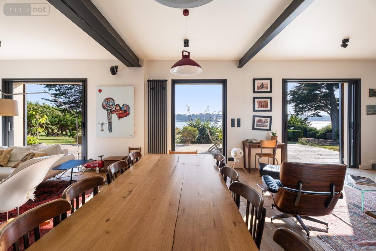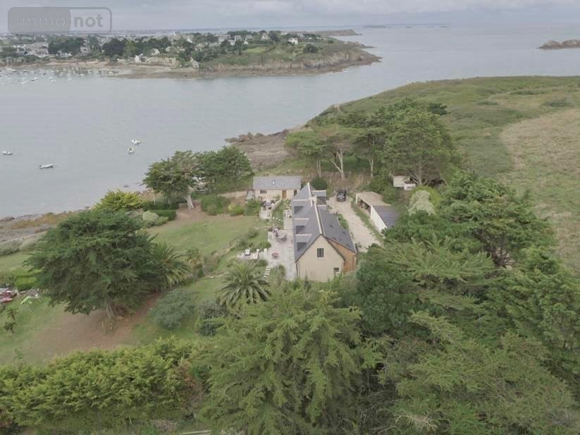 Vente Immo Interactive - A proximité de Saint Malo - SAINT COULOMB - "l'Ile Besnard" - Propriété d'exception - Vue surplombante sur le havre de Rotheneuf et accès direct à la grève - Maison (232.20m²) entièrement rénovée, lumineuse, comprenant un hall d'entrée (placards et toilette) desservant un salon-séjour (58.45m²) avec cheminée, une cuisine aménagée et équipée ouverte avec espace repas (33.7m²), une arrière-cuisine, lingerie et chaufferie, ainsi qu'une chambre avec salle de douches privative et toilette. Le tout ouvrant sur terrasse (sud). L'étage se compose de deux parties distinctes : côté Ouest, une mezzanine avec espace bureau desservant une chambre et une salle de douches avec toilette. Côté Est, un palier distribue une chambre avec dressing, une salle de bains/douche avec toilette et une chambre avec salle de douches privative et toilette. Dans le jardin : Maison d'amis comprenant une chambre et salle d'eau ainsi qu'un espace couchage en mezzanine. Garages et Car Port. Parc paysagé de 13822 m² clos. Première offre possible : 2 600 000 euros (frais de négociation compris) - Date de la vente : 30 mars 2026. Visite sur rendez-vous au 02 99 40 60 81. Le dossier de la vente est à votre disposition sur demande auprès de l'office.