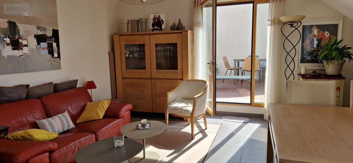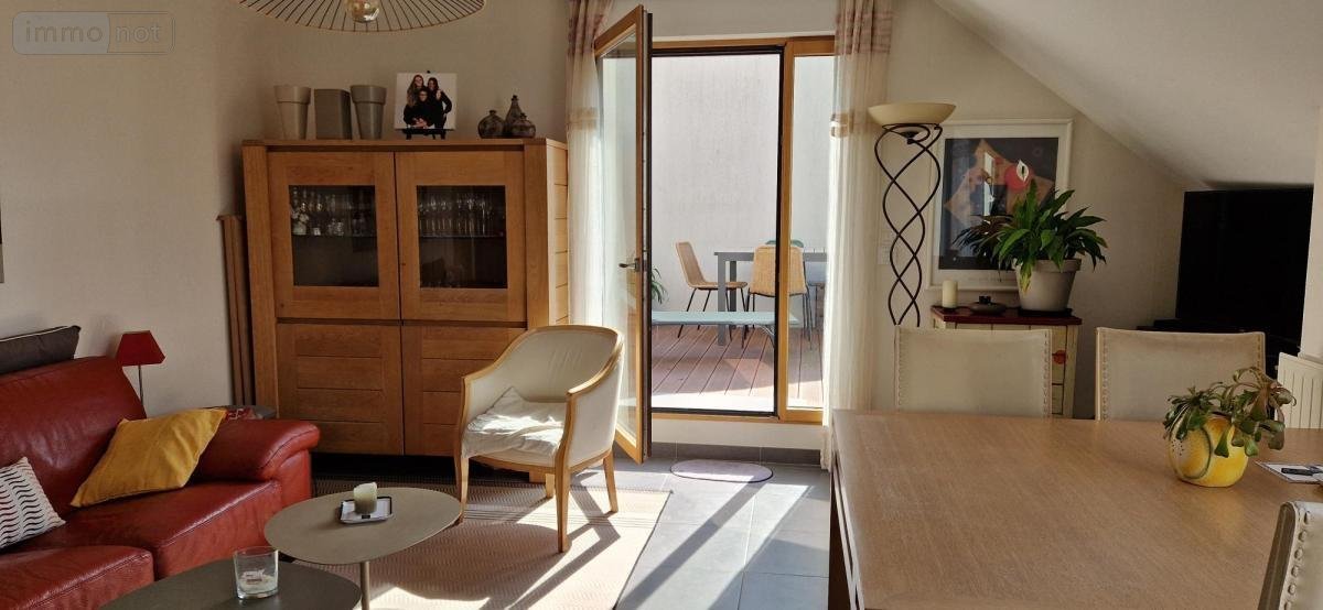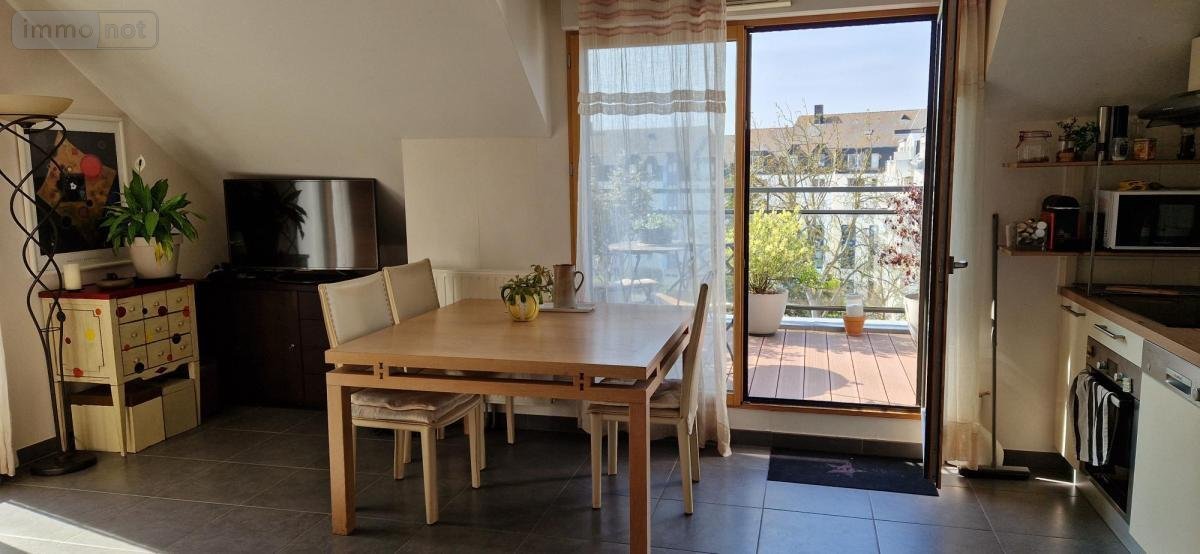 SAINT MALO - Idéalement situé au cinquième et dernier étage d'une copropriété récente, appartement T3 de 65m² et 78m² au sol comprenant une entrée dans la pièce de vie avec cuisine équipée ouverte, donnant accès à un balcon et une grande terrasse Ouest, deux chambres, un dégagement/espace bureau et une salle d'eau avec wc. Garage privatif en sous-sol