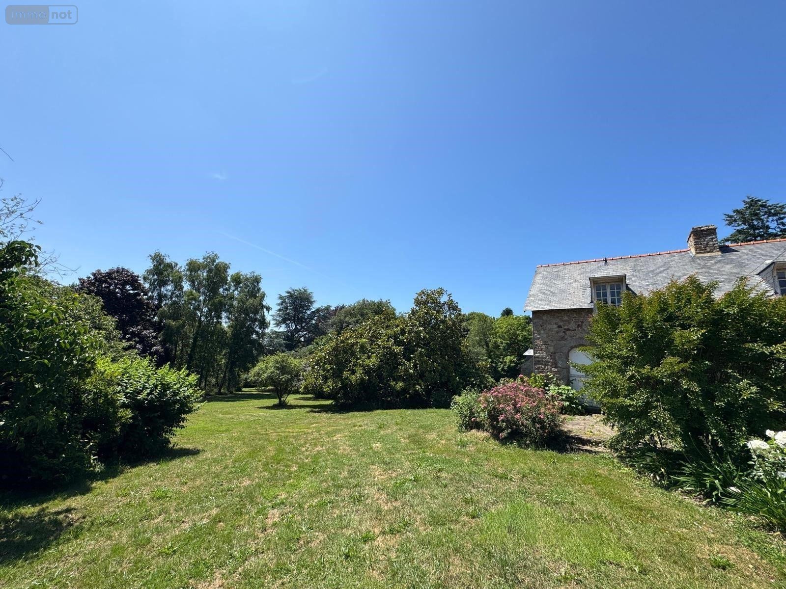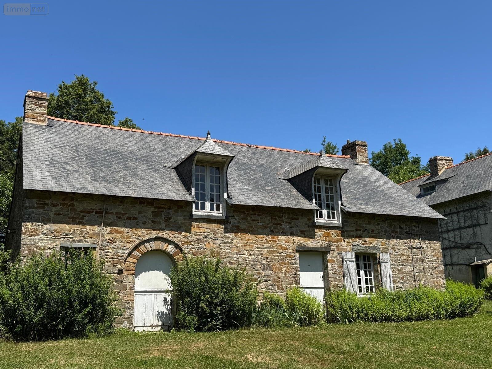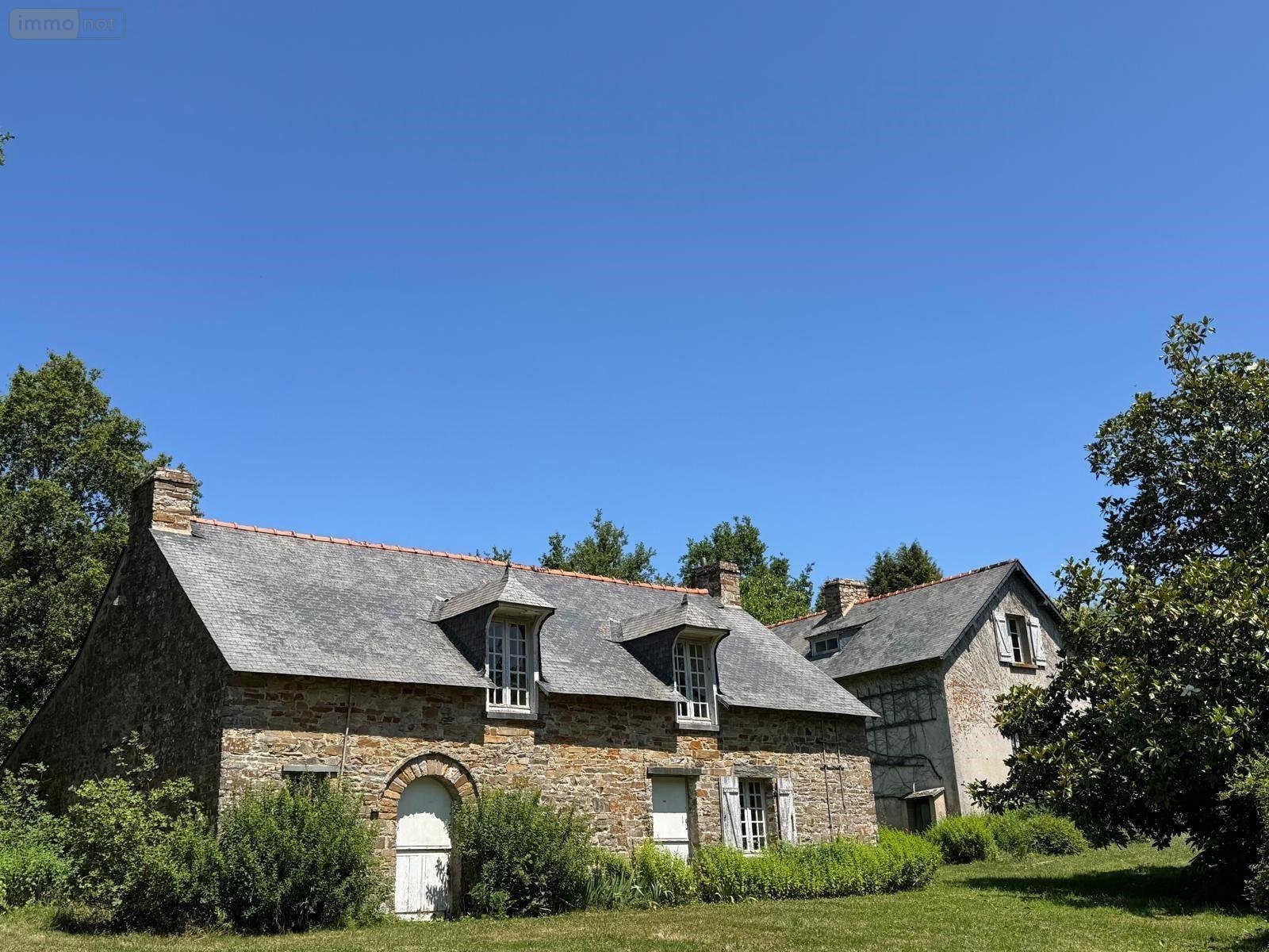 Au Sud de la commune de BAIN-DE-BRETAGNE (35 470), dans un environnement verdoyant avec accès rapide 2x2 voies Rennes-Nantes, une propriété à vendre sur un terrain d'environ 1,5 Hectares comprenant une maison principale d'environ 316m2 composée d'un salon-salle à manger de plus de 70m2 avec cheminée, une cuisine d'environ 28m2, trois grandes chambres, un cellier, un wc, deux salles de bains en enfilade. Un premier étage offrant une chambre avec salle de bains attenante, un vaste dortoir avec autre chambre dans la continuité. La maison secondaire (environ 79m2) se compose d'un atelier, un séjour avec cheminée. A l'étage: palier-mezzanine, une chambre avec salle de bains et wc. Vue dégagée plein Sud sur le parc, garage individuel, puits, ancien four à pain. Deux entrées sur la parcelle. Achat possible d'un parcelle d'environ 2,5 Hectares à proximité immédiate.