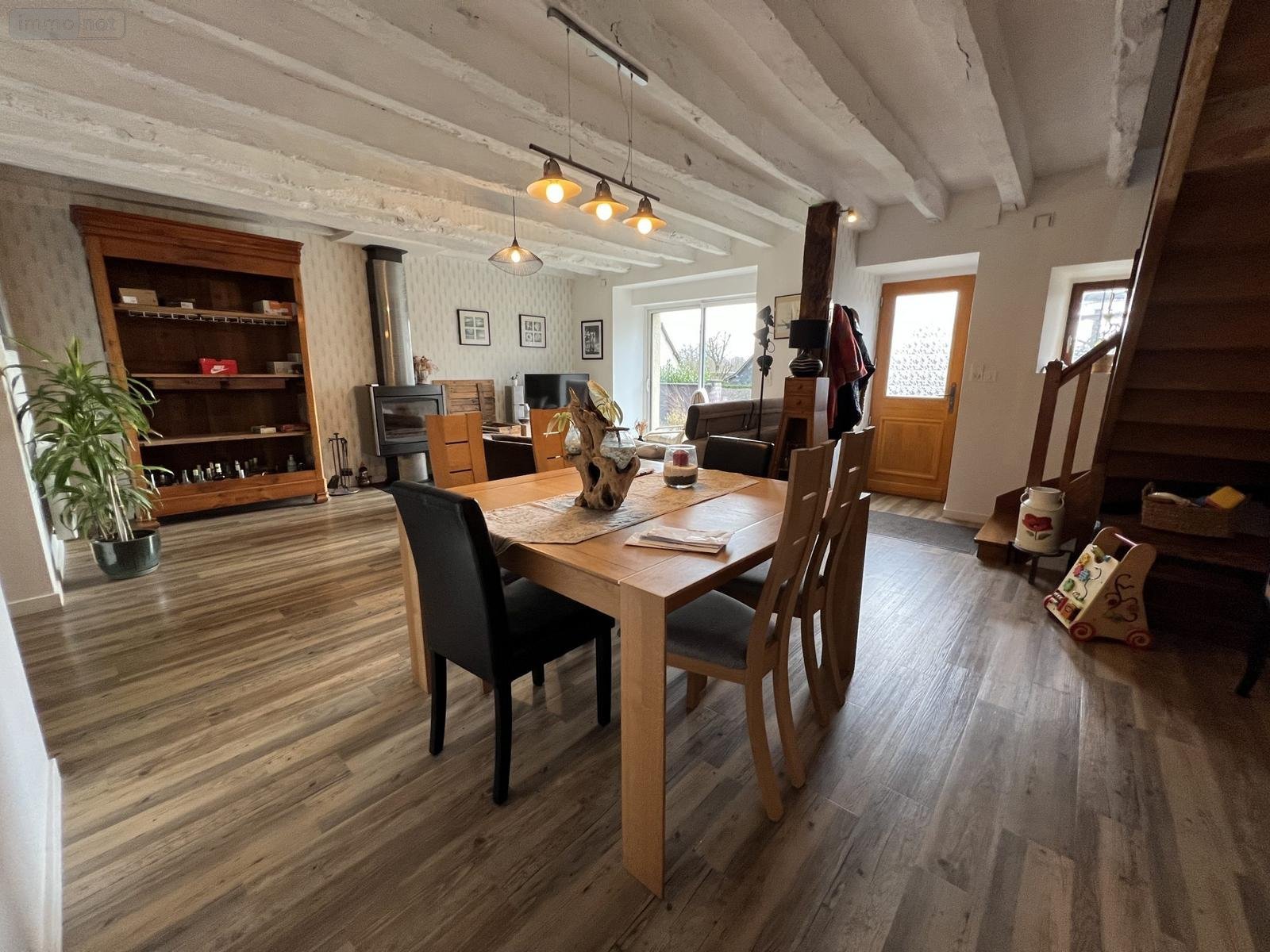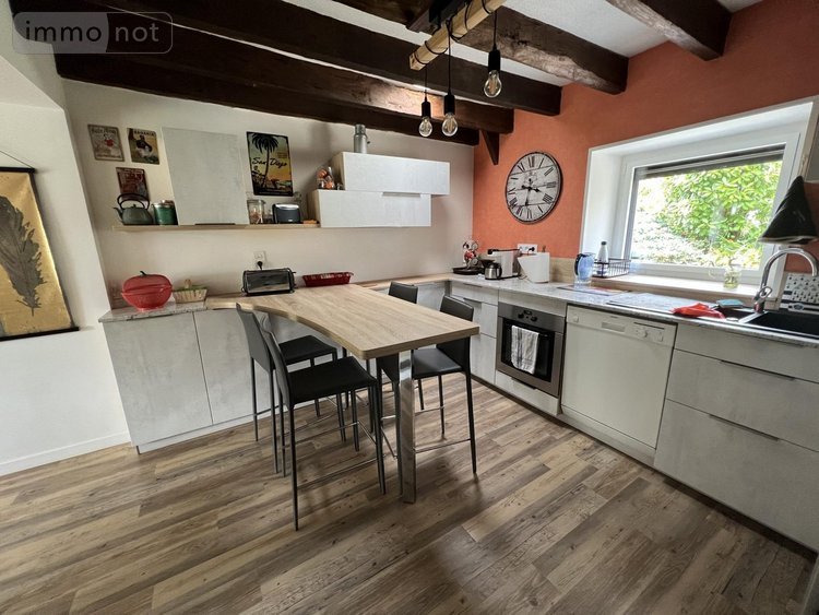 Une maison d'habitation de type Longère à vendre, non mitoyenne, couverte en ardoises naturelles, située sur la commune de CHATEAUGIRON (35 410), dans le bourg de Saint-Aubin-du-Pavail. Elle se compose d'un salon-séjour (avec poêle) orienté Sud, une cuisine aménagée et équipée, une chambre d'environ 19m2 (attenante au salon-séjour), un dégagement desservant une salle de bains (et douche), un wc et une seconde chambre. A l'étage: palier-dégagement, trois chambres, un bureau, une salle d'eau avec wc. Garage attenant avec porte motorisée (grenier sur le dessus) et arrière cuisine. Un second garage non attenant avec bûcher. Terrasse Sud et joli terrain planté autour de la maison d'environ 1000m2 (portail motorisé). Maison raccordée au dispositif d'assainissement collectif. Bon état général.