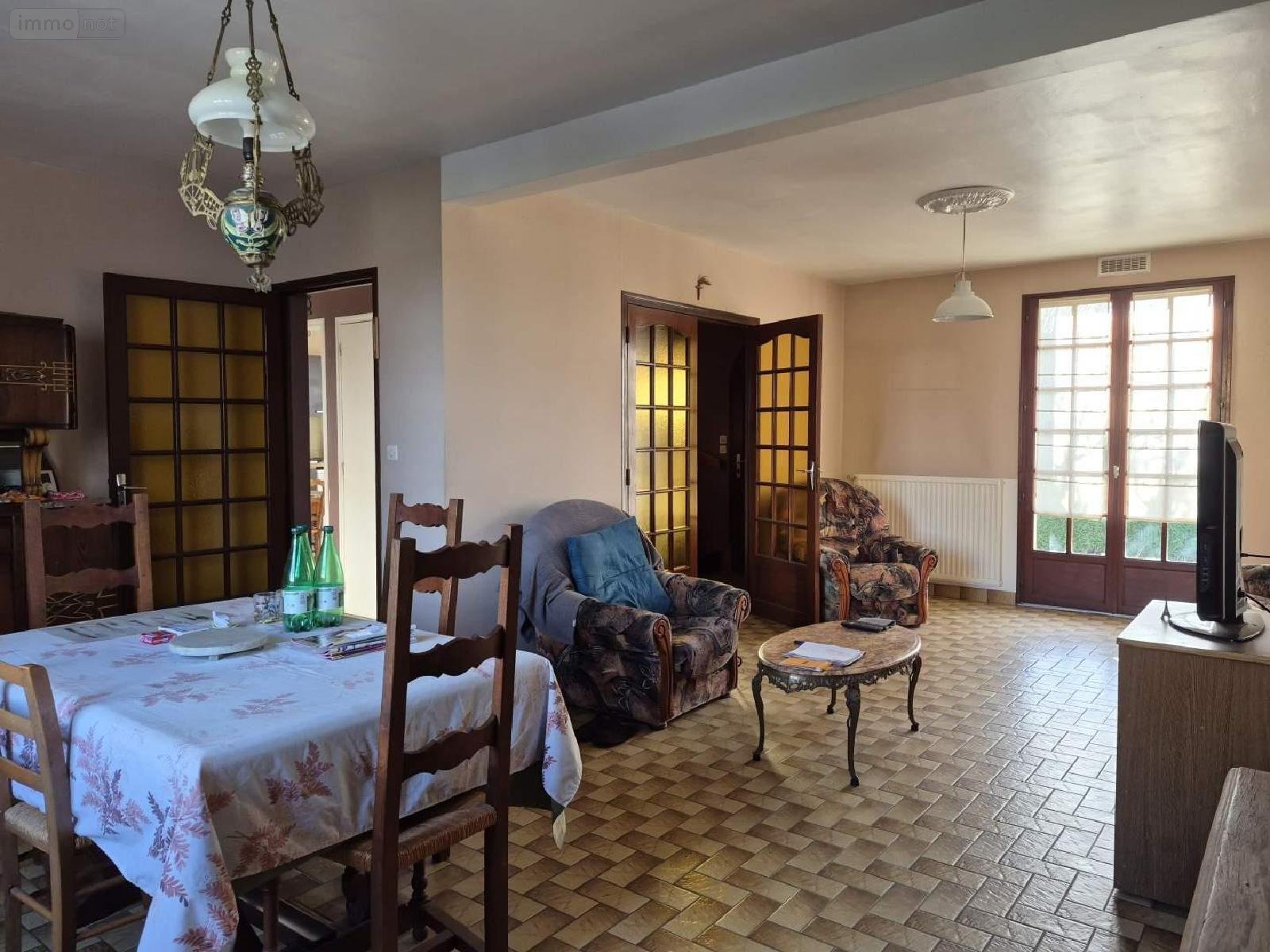 SAINT JOUAN DES GUERETS-Chamante maison indépendante, proche des commerces et écoles, édifiée sur sous-sol complet, comprenant au rdc : entrée, salon-séjour, cuisine, W.C., salle d'eau, chambre, à l'étage : dégagement, deux chambres, grenier, sdb, pièce, au sous-sol : garage, atelier et buanderie, beau jardin clos, le tout sur 637m2. - Classe énergie : E - Classe climat : D - Montant estimé des dépenses annuelles d'énergie pour un usage standard : 2320 à 3190 € (bases 2021 2022 2023) - Prix Hon. Négo Inclus : 280 800 € dont 4,00% Hon. Négo TTC charge acq. Prix Hors Hon. Négo :270 000 € - Réf : 089/3291