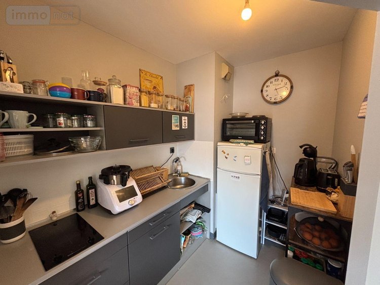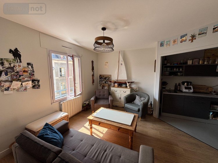VITRE, plein centre, cet appartement de type 2 situé au deuxième étage (sans ascenseur) comprenant : Une entrée-dégagement desservant une pièce de vie avec coin cuisine aménagée et équipée (plaques vitrocéramiques), une loggia, une chambre avec placard, une salle de bains avec wc, un cellier avec branchement machine à laver. Chauffage électrique.