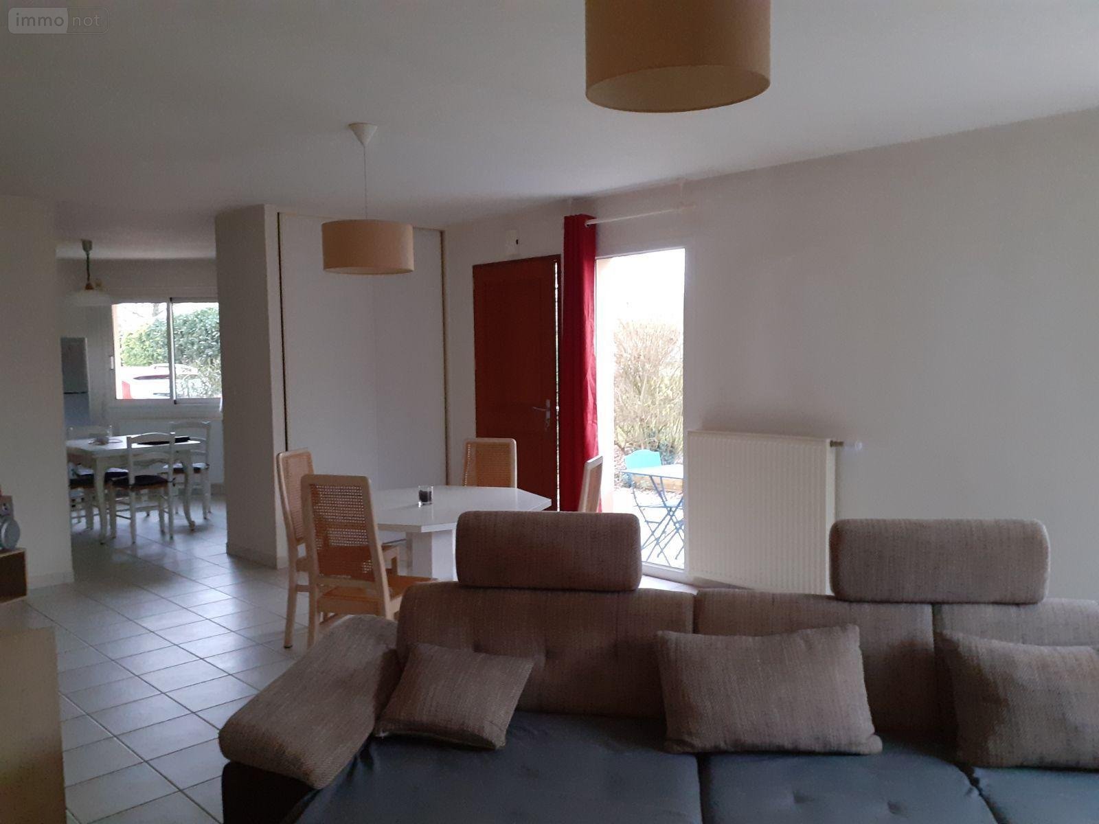 VITRE, Quartier Fleuriais, Cette maison de plain-pied vous offre une entrée avec placard aménagé, un grand séjour/salon donnant sur terrasse (exposition sud), cuisine aménagée et équipée (plaques gaz et hotte) , dégagement avec placard, deux chambres avec placard, salle d'eau avec placard), wc. Garage accolé avec buanderie et cellier .Cour à l'arrière - Terrasse au sud. Terrain - Chauffage au gaz -Loyer : 750, 00 euros + 15,00 euros de provisions sur charges (Taxe des ordures ménagères) Frais : 480,00 euros + 180,00 euros pour l'état des lieux. Libre le 15 février 2026.