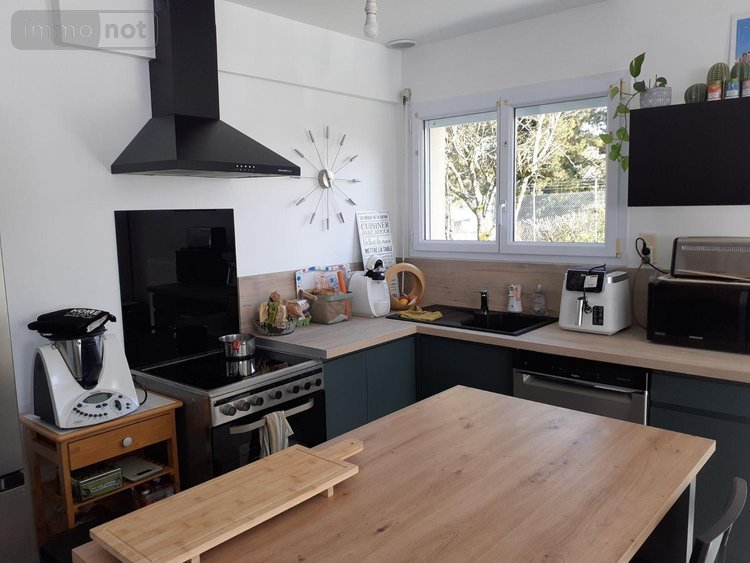 Au rez-de-chaussée : Entrée dans séjour avec coin cuisine aménagée et équipée (cuisinière à induction et hotte) buanderie, wc avec lave-mains.