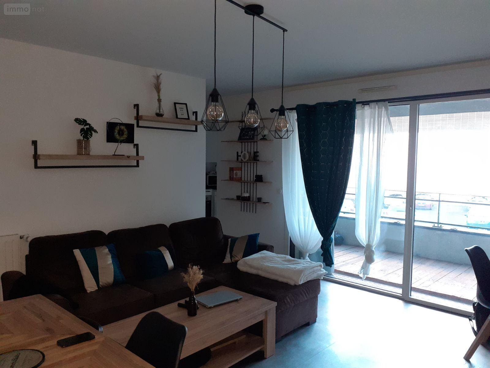 Un appartement de T2 situé au 1er étage avec ascenseur comprenant : Entrée avec placard, séjour/salon avec terrasse exposé Est, coin cuisine aménagé et équipé (plaques gaz, hotte), une chambre avec placard aménagé, cellier, wc, salle d'eau (douche, vasque). Parking en sous sol. Chauffage au gaz -
