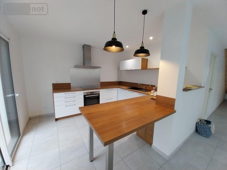 VITRE. Quartier Sud/Bouffort, belle maison contemporaine de 2019 dans lotissement calme, de type 5 avec une surface de 125 m2 Hab et composée de : Belle pièce de vie et cuisine ouverte A/E, une chambre au RDC avec salle d'eau et wc. A l'étage, 3 belles chambres et placards, salle de bains et wc. Garage pour une voiture. Chauffage gaz. Terrasse et terrain de 275 m2. Libre. Visites et renseignements au 02-99-75-79-63.