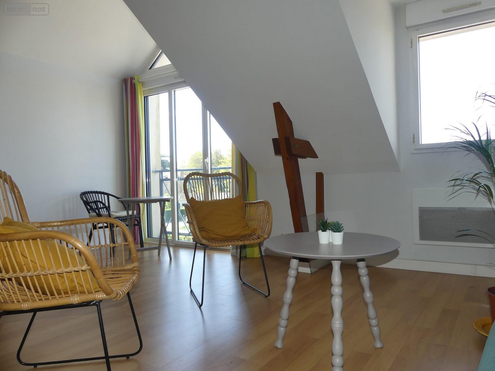REDON CENTRE, situé dans une résidence avec ascenseur, appartement MEUBLE de type 2 d'une surface de 53 m² comprenant une entrée (placard), séjour avec coin cuisine aménagée, une chambre (placard), salle d'eau, wc. Petite mezzanine. Une cave privative. Une cave privative.