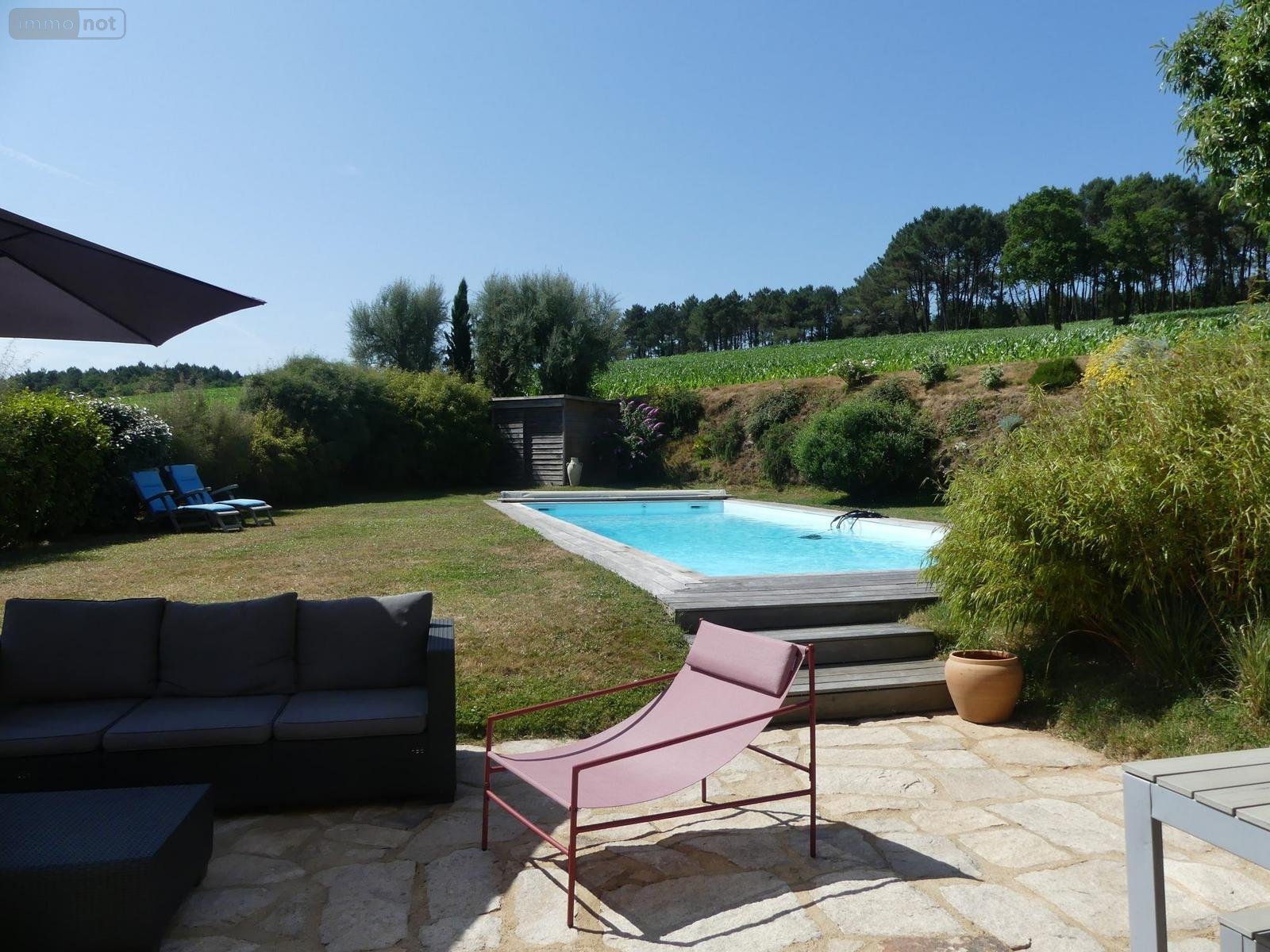 Profitez des beaux jours sur l'une des deux terrasses ou dans le jardin de 2490 m², un véritable havre de paix. La piscine chauffée par une pompe à chaleur vous offrira des moments de détente inoubliables. La maison, en excellent état intérieur, dispose d'un chauffage individuel électrique et deux poêles à granulés.