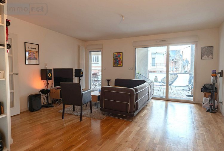 RENNES Thabor - Paris, dans une copropriété sécurisée haut de gamme, T3 avec loggia de 24m² composé d'une entrée, un dégagement avec placard, une pièce de vie sur parquet avec cuisine ouverte équipée et aménagée, wc séparés, SDB et 2 chambres. Le tout exposé au SUD avec accès sur la loggia. Stationnement en sous-sol fermé.