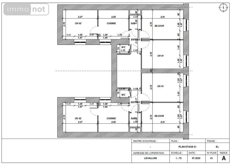 - Au sixième étage, sous combles : deux appartements de deux pièces et deux studios.