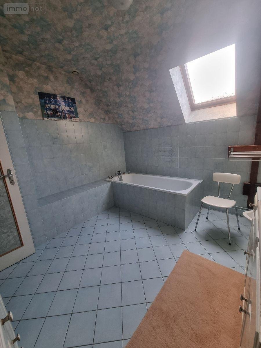 1 étage, palier, 3 chbres, salle de bains, WC et débarras.