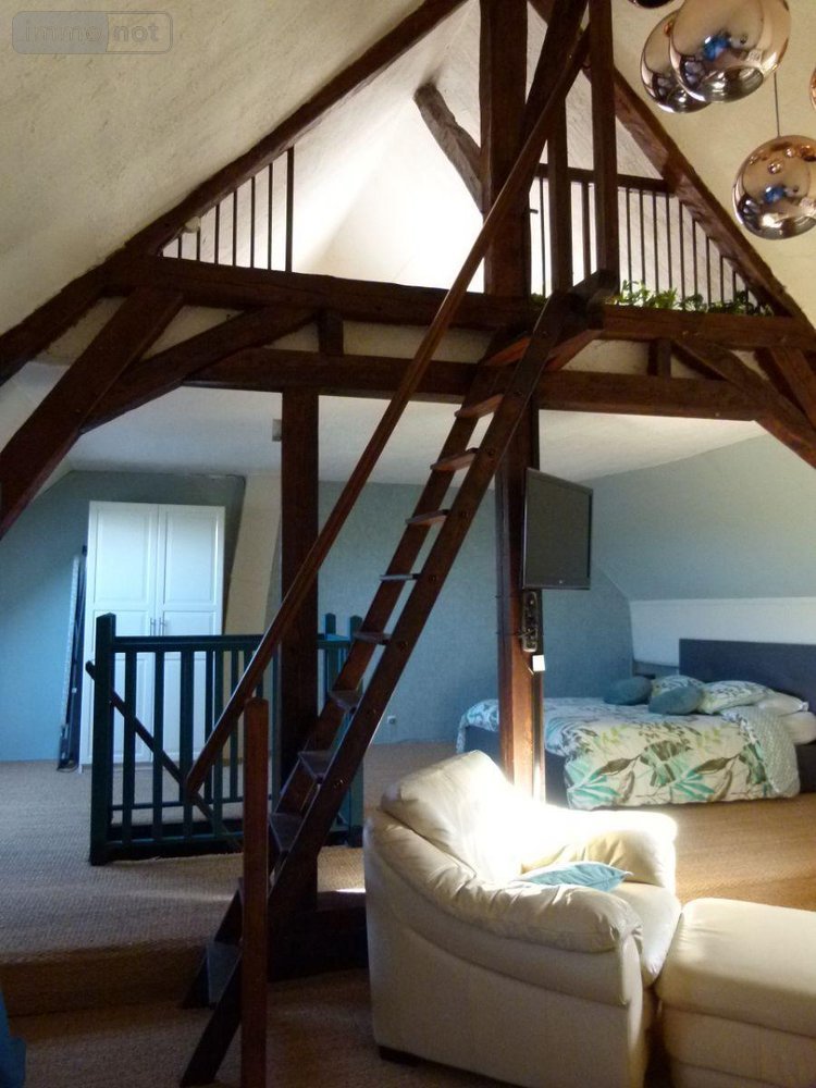 Possibilité de faire donc une autre entrée indépendante dans une impasse donnant dans une grande pièce de vie salle à manger avec coin cuisine aménagée de 40 m², poutres apparentes, poêle à granulés, accédant au jardin, WC avec lave mains, Salle d'eau, escalier de meunier montant dans un magnifique espace de 36 m² sous rampants avec charpente apparente et différence de niveau dans laquelle vous pouvez faire selon vos besoins et envies, un  voir plussieurs espaces de couchage, bibliothèque, salon, atelier artistique etc...