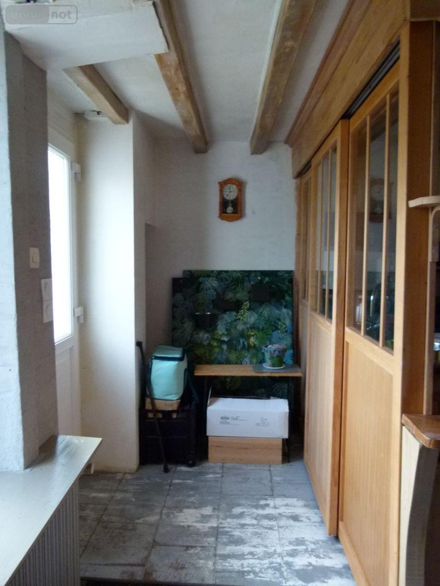 entrée dans une pièce de vie avec coin cuisine aménagé avec verrière, poêle à bois, poutres apparentes, murs pierre, cellier, en contre-bas salon - salle à manger avec accès au niveau du jardin, couloir, petite chambre, chambre avec placard, buanderie, salle de d'eau avec douche à l'italienne et WC, escalier de meunier accédant à une salle de bain sous rampants avec WC donnant dans une pièce sous rampants avec Vélux et une chambre avec un escalier extérieur indépendant et une petite terrasse privative.