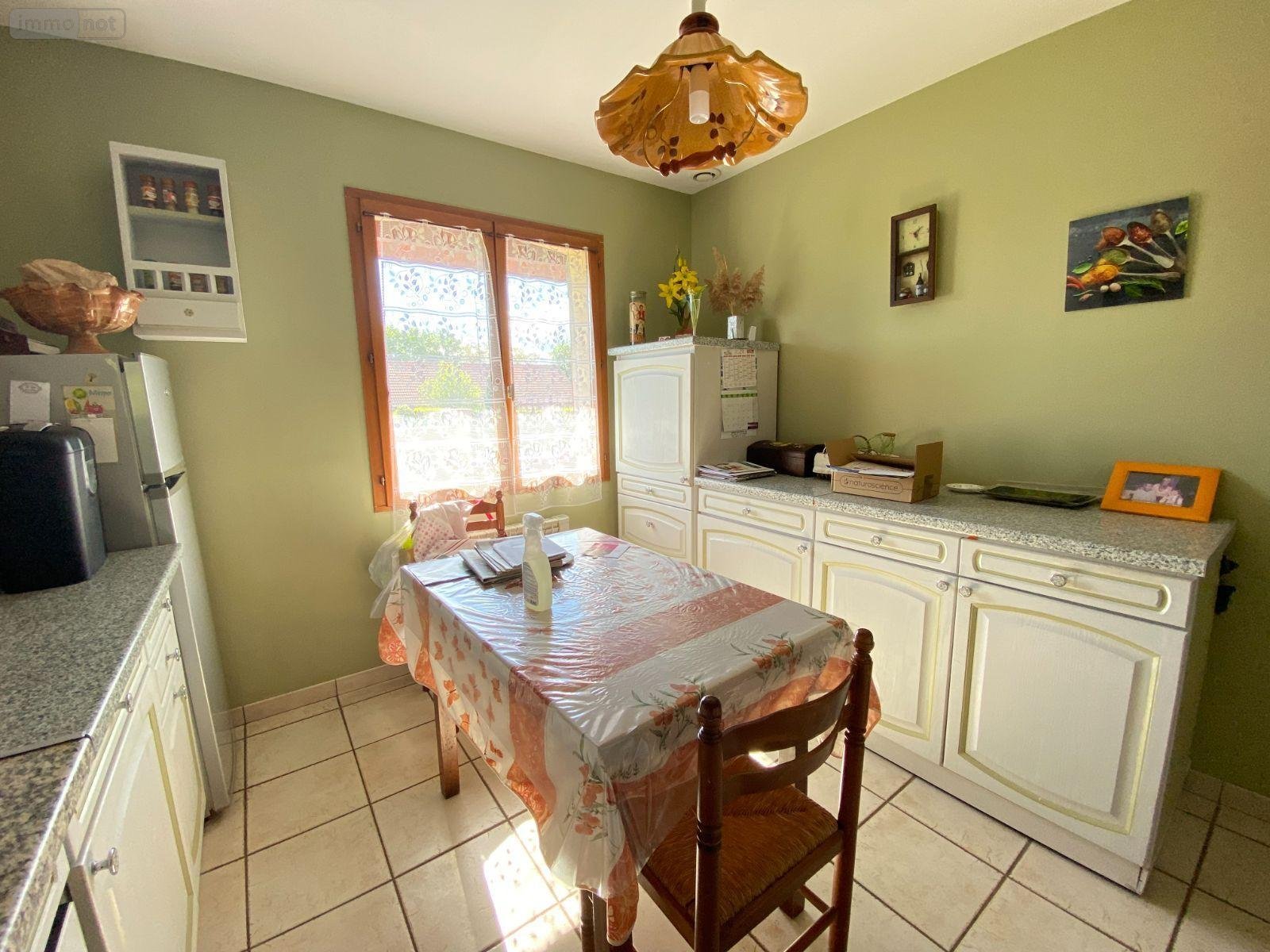 VILLEDIEU SUR INDRE (36320), dans quartier calme, une maison d'habitation construite en 2000 - 2001, d'une superficie de 100m² environ, avec : entrée (avec rangements), séjour-salon ouvert sur cuisine aménagée-équipée, arrière cuisine + buanderie, 3 chambres, salle de bain (baignoire et douche), WC - Garage attenant - Jardin clos et arboré 803m² avec terrasse couverte et cour goudronnée - Chauffage électrique + bois (poêle à granulés)