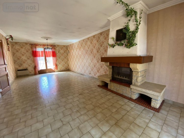 BUZANCAIS (36500), une maison d'habitation d'une superficie de 92,7m² (même surface au sous-sol), avec : entrée, séjour-salon 32,6m² (avec cheminée-insert), cuisine aménagée, 3 chambres, salle de bain, WC - Sous-sol complet (garage, arrière cuisine-buanderie, pièce) - Jardin clos et arboré 1.351m² avec terrasse - Chauffage électrique + bois (insert) - Fenêtres bois double vitrage -