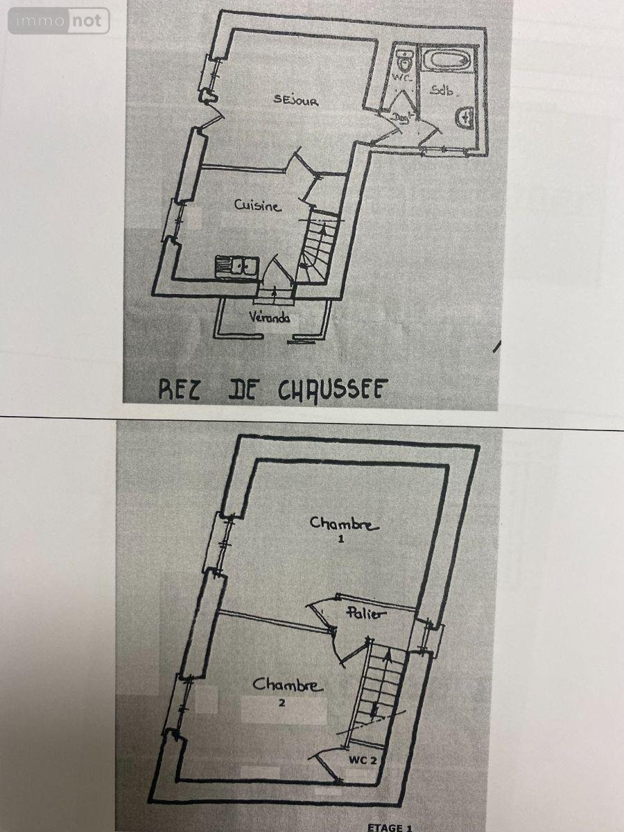 BUZANCAIS (36500), une maison d'habitation d'une superficie de 60m²environ, avec : séjour-salon (disposant de la climatisation réversible), cuisine (avec débarras), WC, salle d'eau (douche italienne) - A l'étage : 2 chambres (parquet en chêne) avec WC sanibroyeur - Cave dessous - Cour avec hangar et jardin à la suite 831m² avec puits - Chauffage électrique (convecteurs + clim réversible dans séjour) - Fenêtres PVC double vitrage avec volets électriques