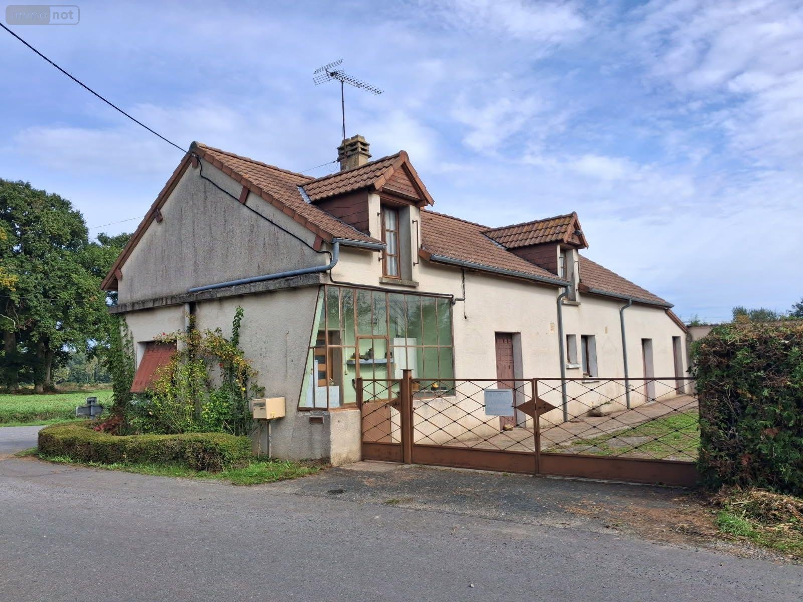 SELLES SUR NAHON (36180), en campagne, une maison d'habitation, comprenant : verrière, cuisine, salle à manger, salon (avec cheminée-insert), 2 chambres, salle d'eau, WC - A la suite : une troisième chambre avec salle d'eau et WC sanibroyeur Grenier au-dessus - Dans l'angle : arrière cuisine et garage - Terrain 13.557m² avec cabanons - Chauffage électrique (convecteurs anciens) et bois (insert) - Fenêtres bois survitrage