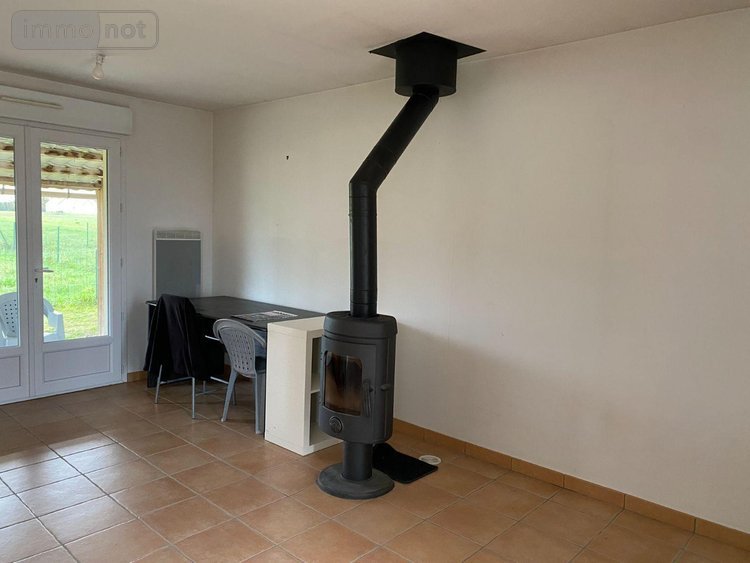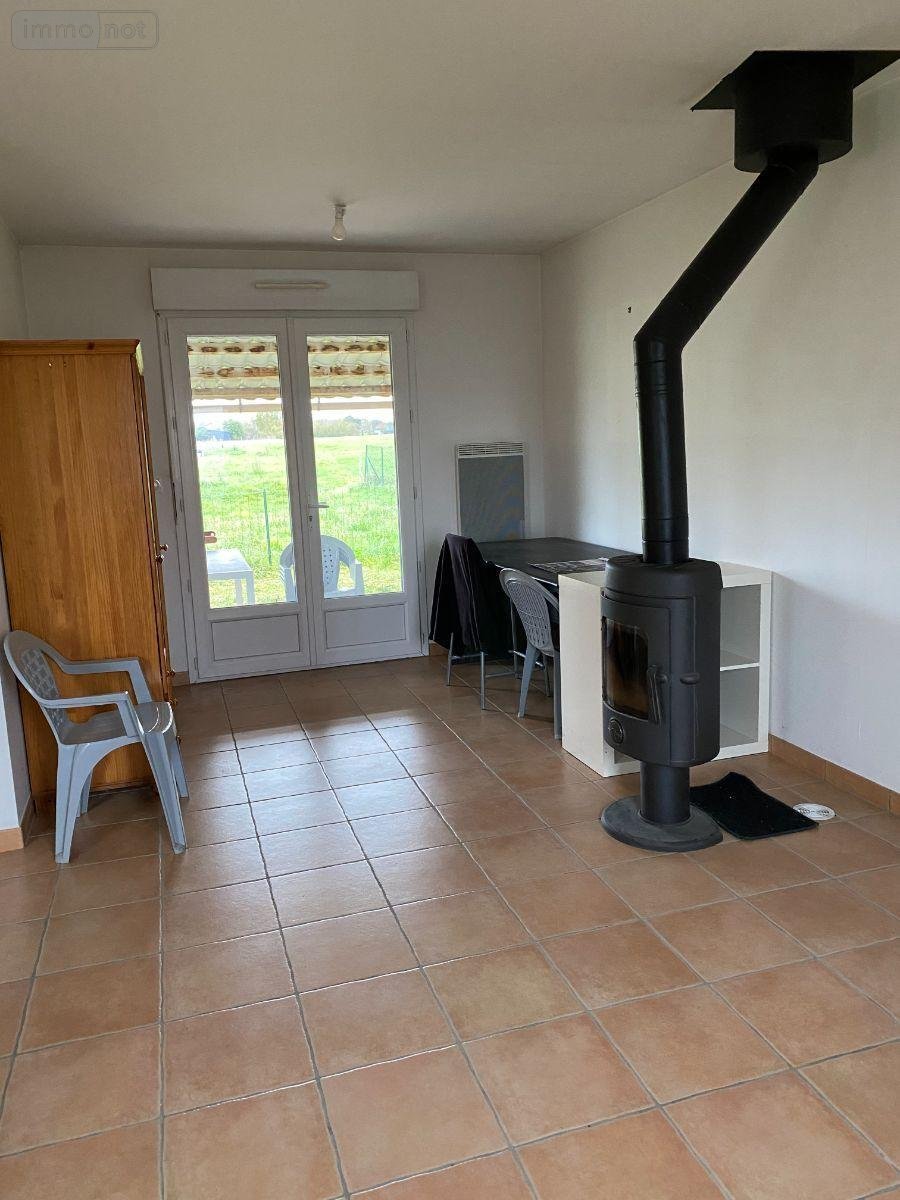 Une pièce de vie (26m²) avec une cuisine ouverte aménagée et un poêle à bois, une arrière cuisine faisant office de buanderie, une chambre avec placards, une salle d'eau douche à l'italienne et wc.