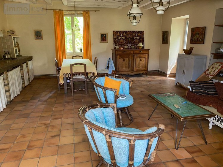 Maison principale : Un spacieux salon de 40 m² environ, avec cuisine aménagée et cheminée insert, trois chambres, une salle de bains équipée d'un WC, ainsi qu'une pièce d'eau à rénover selon vos envies.