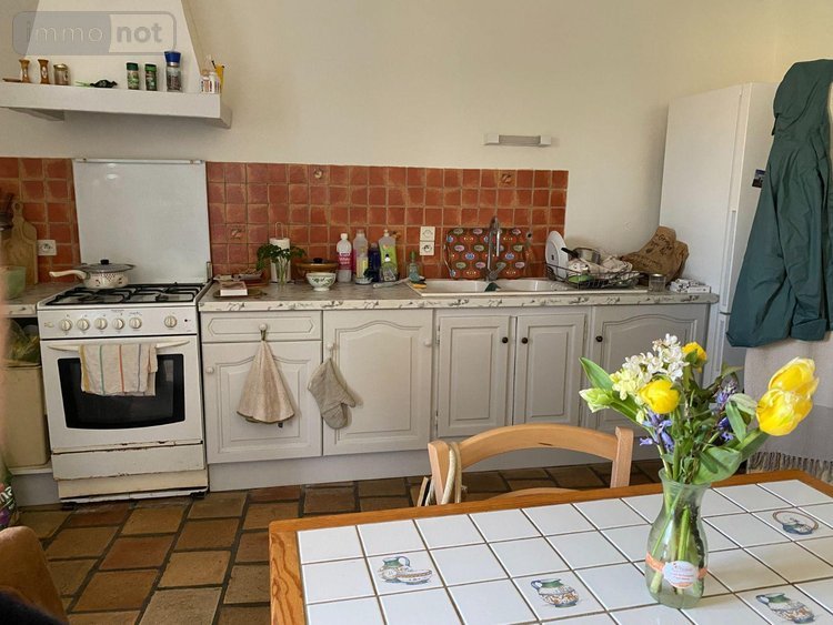 Beaucoup de charme pour cette maison en pierre composée d'une cuisine aménagée, un séjour salon avec poutres et pierres apparentes et une cheminée équipée d'un poêle à bois, deux chambres de plain-pied, un dégagement faisant office de bureau, une salle d'eau, un wc séparé, un cagibis.