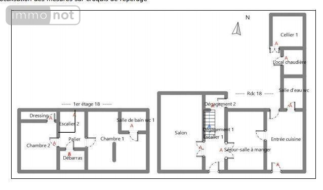A l'étage : une grande chambre disposant d'une salle d'eau, deux autres chambres de taille moyenne disposant d'un petit cabinet de toilette et deux plus petites chambres.