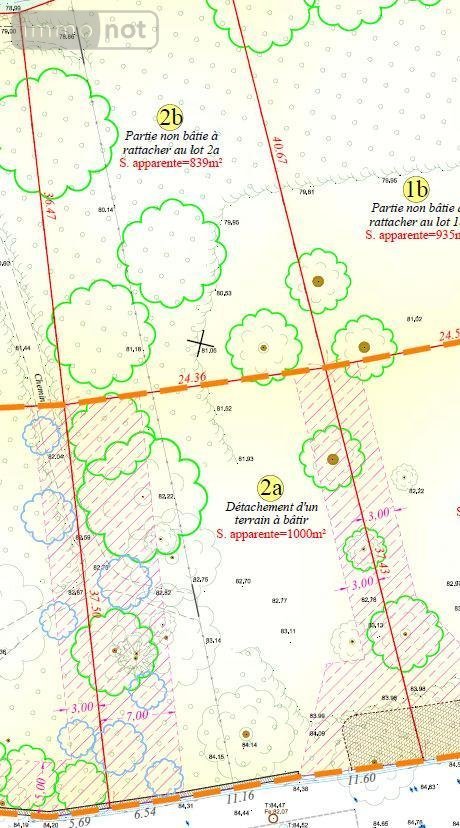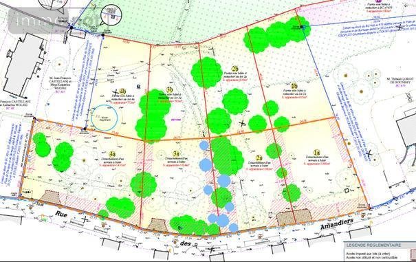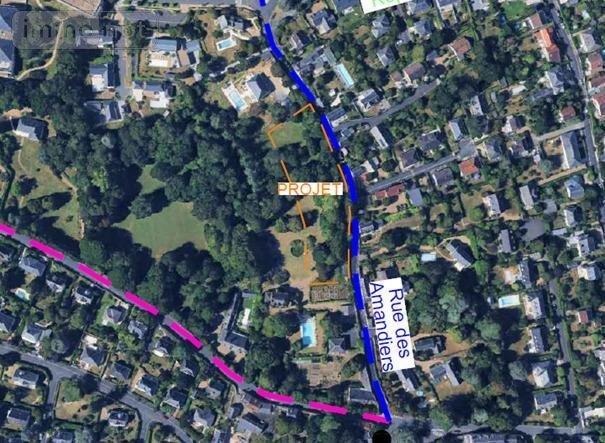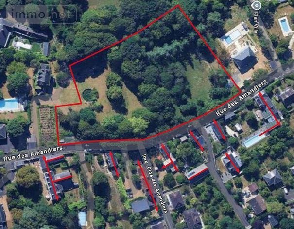 Saint-Cyr-sur-Loire: au sud de la rue des Amandiers, terrain à bâtir, boisé, de 1839m² environ, viabilisation à prévoir en bordure. 29m linéaire en façade et plus de 70m de longueur. Rue calme, pas de voisinage sur l'arrière car le terrain voisin est non constructible et protégé. Possibilité de construire jusqu'à 500m² de surface plancher. (honoraires inclus à la charge de l'acquéreur 3.5% TTC soit 13 300 euros)