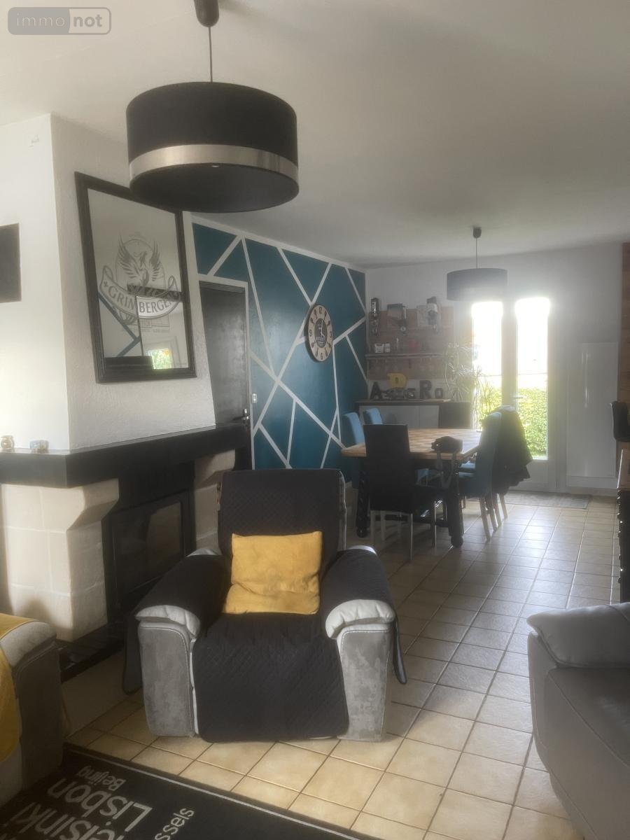 Maison de type F5 d'environ 82 m² comprenant entrée dans séjour-salon avec cheminée et insert, cuisine ouverte aménagée, wc, salle de bains, une chambre.