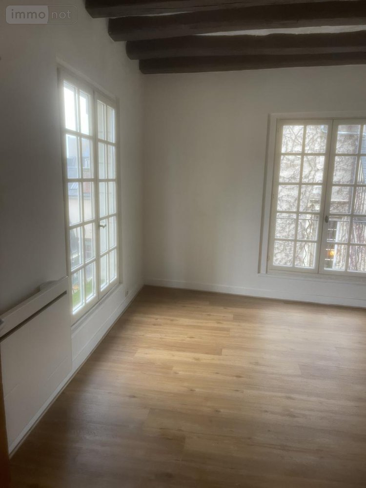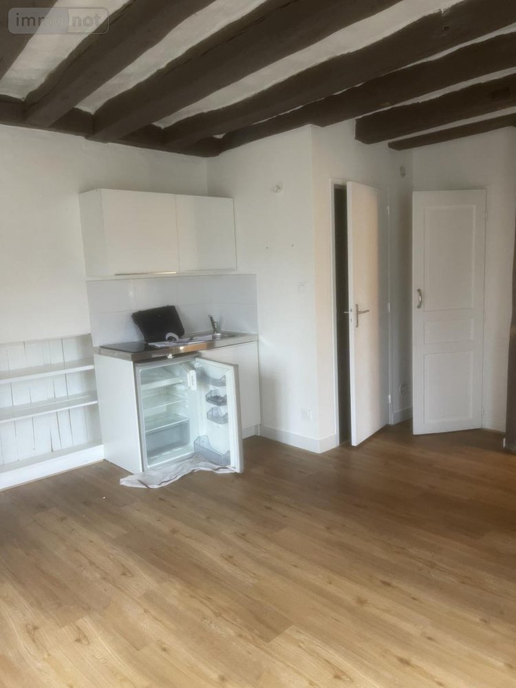 TOURS PLACE CHATEAUNEUF, studio de charme d'environ 20 m² comprenant : pièce principale, petit coin kitchenette (frigo, plaque électrique, meuble haut), salle d'eau avec vasque, douche récente, branchement machine à laver, wc indépendant.