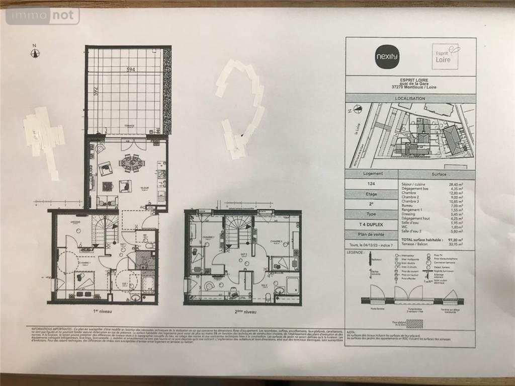 MONTLOUIS SUR LOIRE - BORDS DE LOIREDans résidence neuve, appartement en duplex de 97 m² avec une terrasse de 33.95 m²L'appartement est composé d'un séjour/ cuisine aménagée et équipée (meubles, plaque de cuisson électrique, four, hotte) (28 m²), une chambre (12.80 m²) dressing (5 m²), salle d'eau, wc. A l'étage : deux chambres (9 et 10.85 m²), bureau de 7 m2, salle d'eau, wc.Au deuxième étage avec ascenseur.Deux parkings dont un en sous-solChauffage au gaz de ville - Diagnostic énergétique à venir (construction en cours) - Classe énergie : en cours - Classe climat : en cours - Disponible début juillet 2024 Loyer : 1 400 € / mois CC dont 50 € charges locatives. Dépôt de garantie : 1 350 € - Réf : 044/1903Contact Nathalie MADON - 06 07 61 87 92/02 47 56 11 62 - [email protected]