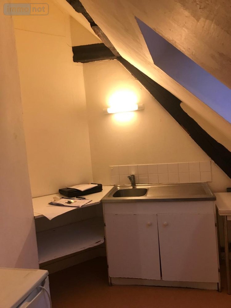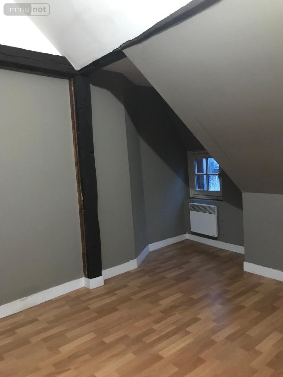 A louer grand appartement T3 sous combles, beaux volumes : Entrée, séjour-coin cuisine, deux chambres, salle d'eau et salle de bains, deux wc.